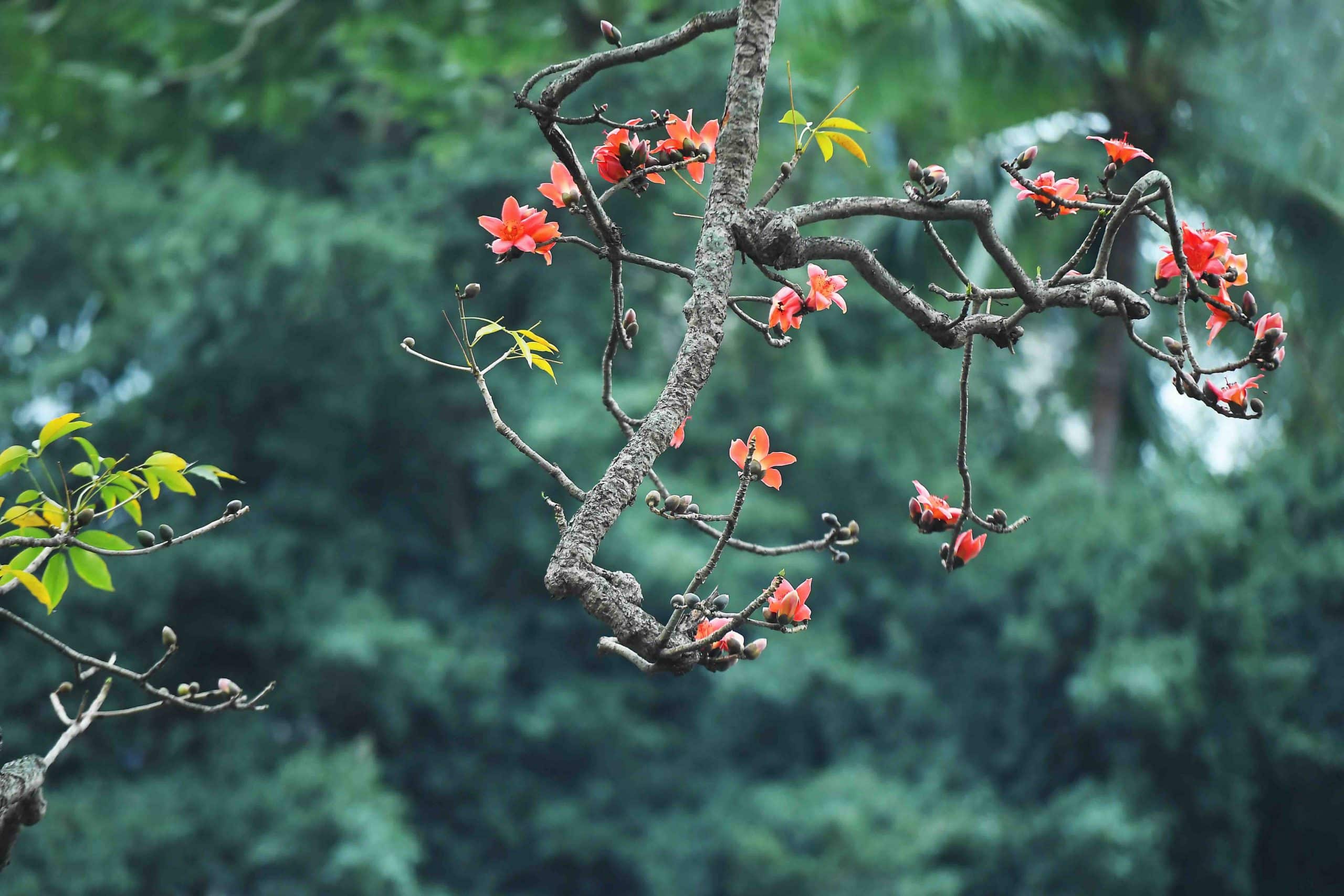 Tháng 3 về, khi những dải sương xuân bảng lảng giăng mắc trên triền đá vôi Sài Sơn, Chùa Thầy (xã Quốc Oai, Hà Nội) lại bước vào mùa rực rỡ nhất trong năm. Không cần nắng vàng rực rỡ, chính không gian mờ ảo của tiết trời cuối xuân lại là phông nền hoàn hảo để sắc hoa gạo thắp lên những “ngọn lửa” ấm áp giữa lòng di sản nghìn năm tuổi.