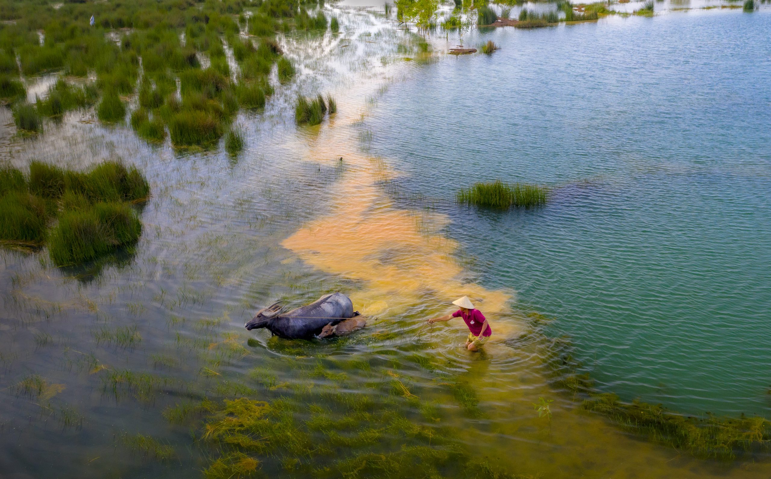 Cảnh đàn trâu di chuyển nổi bật trên đồng cỏ qua góc nhìn trên cao tạo nên một bức tranh “mùa len trâu” đáng nhớ. Thật vậy, len trâu là sự trả ơn của con người với con trâu quanh năm vất vả, giúp ích trong công việc đồng án. Ông Năm dẫu đã có tuổi nhưng vẫn mê nghề nuôi trâu chạy đồng nước nổi. Tuy nhiên, ông trăn trở, những năm gần đây người miền Tây thường ngóng lũ, chờ con nước về mà lòng trĩu nặng. Có năm cạn kiệt nước ở đầu nguồn nên các sản vật trù phú, nguồn cỏ cho trâu ăn ít dần cũng là lúc cảnh len trâu vắng bóng. Mùa len trâu hàng năm chỉ dừng lại khi nước lũ bắt đầu rút, người và trâu sẽ quay về để chuẩn bị cho mùa vụ mới. Ông hy vọng đời con cháu sau này vẫn còn được trải nghiệm mùa len trâu.