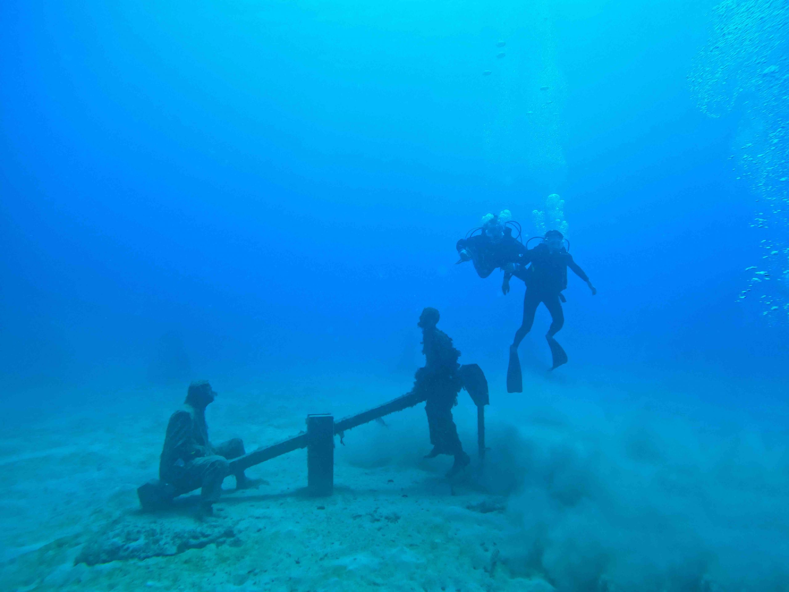 Dù đã xem ảnh trên mạng trước khi đi, nhưng tự mình bơi lặn trước công trình đồ sộ hơn 300 tác phẩm ở độ sâu hun hút của Museo Atlántico, quả thực vô cùng ngoạn mục. Những bức tượng, sau nhiều năm dưới nước đang dần thành nơi cư ngụ của rong rêu và các sinh vật biển, đã không còn độ nhẵn mịn, sắc nét như khi mới làm, nhưng vẫn vô cùng sinh động. Gắn bó với biển và dành rất nhiều thời gian khám phá những rạn san hô, một trong những đam mê lớn nhất của nghệ sĩ Jason Taylor là tạo nên những tác phẩm độc đáo, kết hợp nghệ thuật với bảo tồn sinh thái biển. Các tác phẩm của ông được làm từ vật liệu thân thiện với môi trường, có độ pH trung tính, không gây ảnh hưởng hệ sinh thái biển và thực vật địa phương. Những tác phẩm này có khả năng tồn tại hàng trăm năm, hòa nhập tự nhiên vào môi trường biển, đồng thời thu hút nhiều sinh vật biển như bạch tuộc, tôm, cua, ốc, nhím biển và cá nhỏ đến sinh sống. Nhờ đó, các rạn san hô nhân tạo được hình thành, góp phần bù đắp cho sự mất mát của 75% diện tích san hô trên toàn thế giới đang chết dần bởi sự xâm hại của con người cũng như tác động của biến đổi khí hậu.