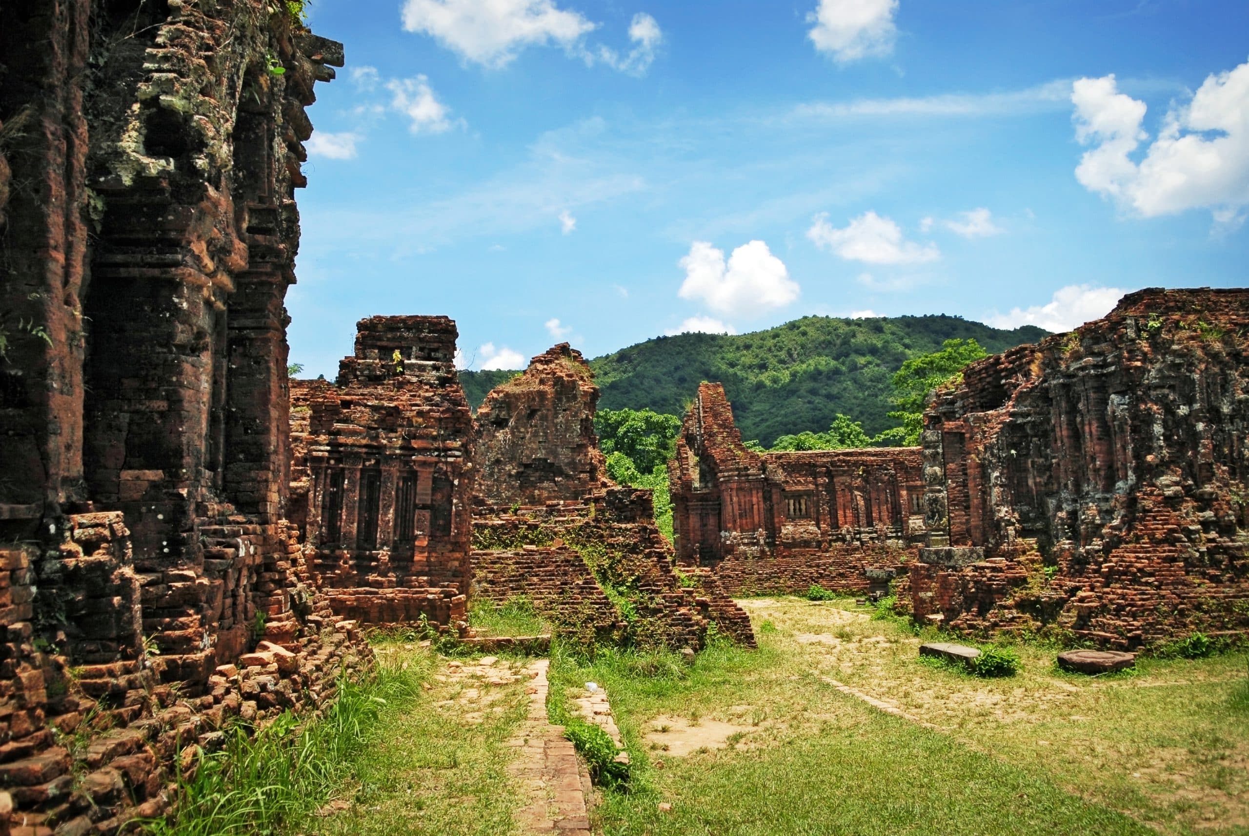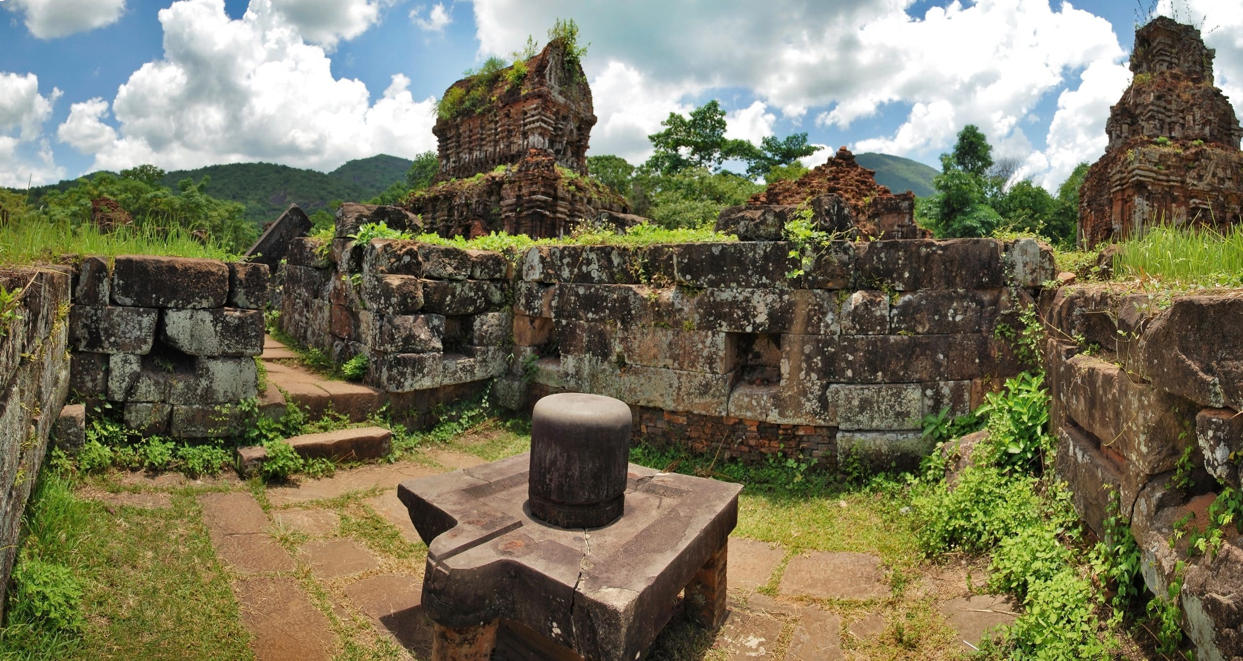 Nằm trong không gian được bao quanh bởi những dãy núi hùng vỹ, thung lũng Mỹ Sơn thâm nghiêm, kỳ bí là một trong những điểm đến hấp dẫn trên con đường di sản miền Trung.