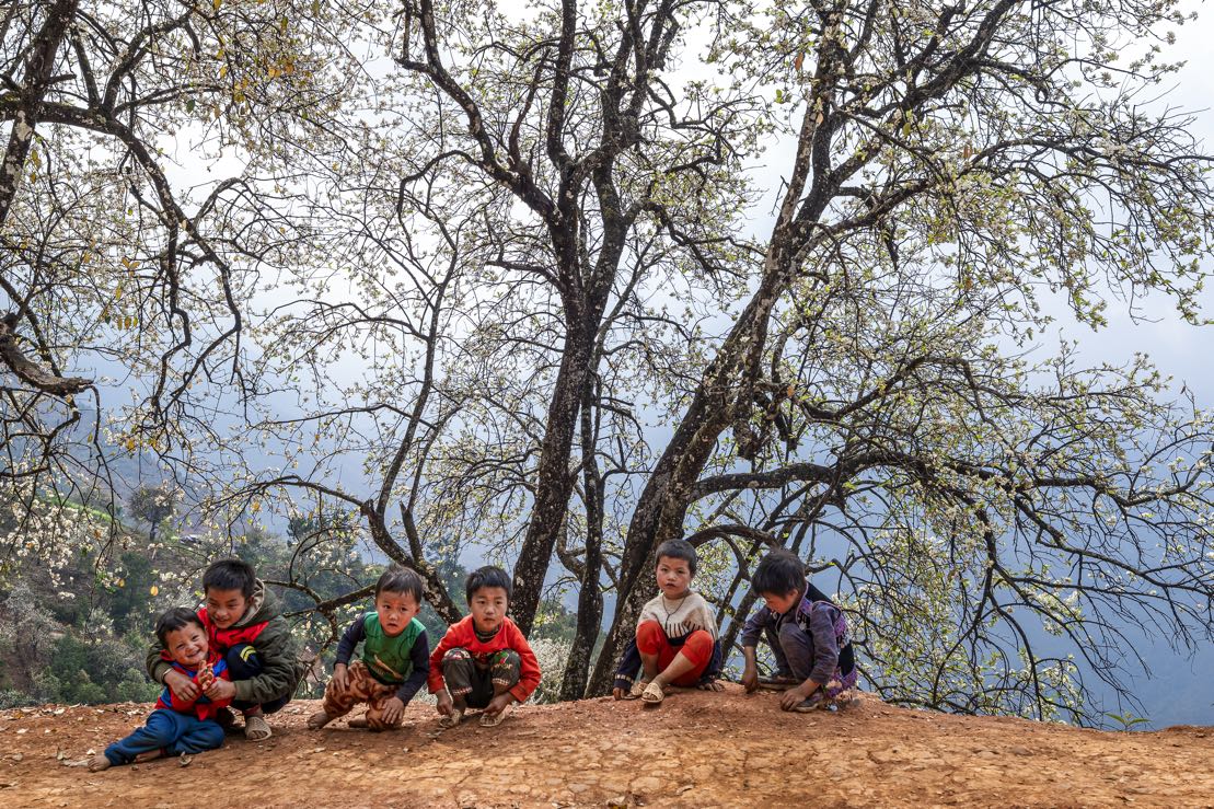 Men theo con đường đất đỏ uốn quanh những đồi sơn tra đang mùa khoe sắc, tôi đi vào khu vực sinh sống của dân bản Nậm Nghiệp, nhà của họ vắt vẻo trên những ngọn đồi cao. Tuy điều kiện khó khăn, nhưng người dân nơi đây mang khuôn mặt rạng rỡ sắc màu hạnh phúc. Phụ nữ và trẻ em mặc váy áo tự may tỉ mỉ, nhiều màu sắc, nhưng đẹp nhất vẫn là nụ cười của họ. Trẻ em Nậm Nghiệp có hàm răng trắng, má bầu bĩnh và ửng hồng, đôi mắt chúng trong veo, lấp lánh. Tôi mê mẩn ngắm lũ trẻ cười nói với nhau, cùng chúng chơi mấy trò nho nhỏ, cảm giác hạnh phúc và bình yên tràn ngập trái tim. Thấy tôi giơ máy ảnh, chúng che miệng cười thích thú, thì thầm gì đó rồi nối đuôi nhau chạy trốn sau gốc sơn tra già. Khi gần gũi hơn, chúng chỉ tôi những cây hoa lớn nhất tít trên ngọn đồi cao, nơi tôi có thể săn được chiều hoàng hôn rực rỡ và tận hưởng cảm giác rất gần với thiên đường.