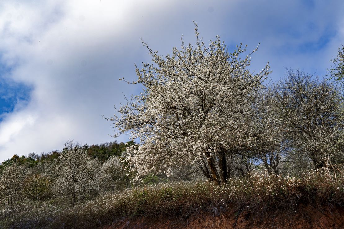 Sau đoạn đường ấy, hiện ra trước mắt tôi là trùng trùng điệp điệp núi non và những sườn đồi trắng muốt hoa sơn tra. Một nơi nguyên sơ giữa thiên đường mây trắng tưởng như chỉ cần một cái với tay là có thể chạm vào bầu trời. Mệt mỏi tan biến sau một cú hít dài thứ không khí tinh khiết giữa bạt ngàn hoa sơn tra, mọi thứ trong veo không vướng bụi trần.