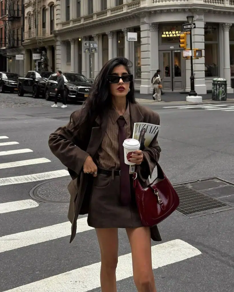 Nếu phải chọn một gam màu để khắc họa tinh thần mùa đông 2025, nâu choco chắc chắn là sắc độ dẫn đầu. Một tông nâu trầm ấm, sang trọng mà vẫn giữ được nét trẻ trung hiện đại.