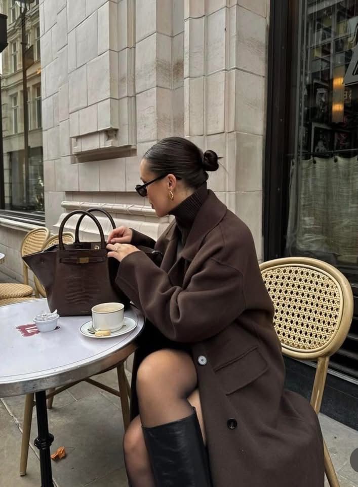 Trong những ngày gió lạnh, một chiếc áo dạ nâu choco kết hợp cùng đôi boots da là lựa chọn lý tưởng cho vẻ ngoài chỉn chu mà không cần quá nhiều nỗ lực.