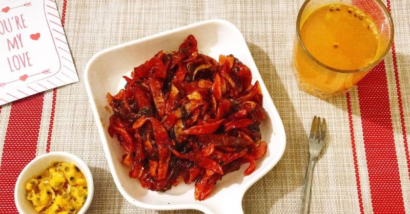 Thành phẩm chuẩn chỉnh giữ nguyên sắc đỏ tự nhiên, cảm giác giòn giã khi nhai.