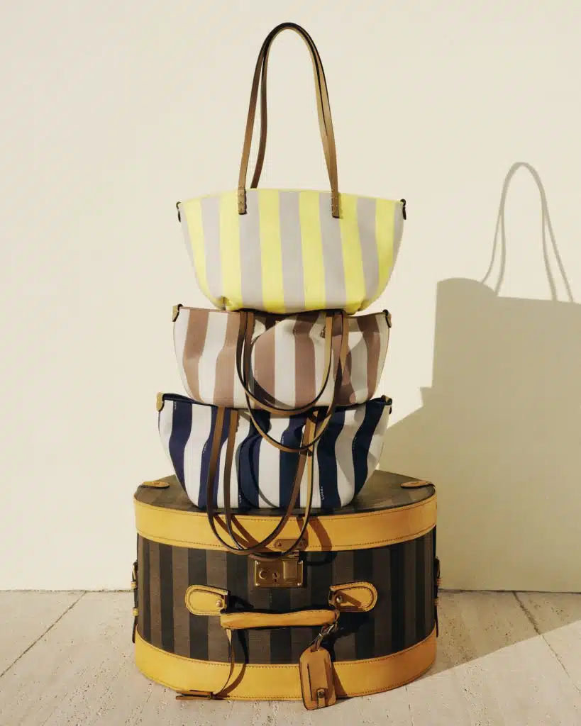 Tất cả tóm lại trong một phiên bản hồi sinh và mang tính mùa hè của mẫu Pequin đặc trưng, mẫu ‘logo no logo’ dọc màu đen và thuốc lá. Sự thể hiện thuần khiết của sự sang trọng thầm lặng giờ đây được diễn giải lại bằng các biến thể hai màu gồm các màu sáng và nhạt màu trung tính – vàng, xanh nhạt, be và xanh đậm. Từ áo khoác ngoài cho đến trang phục đi biển, Pequin được ứng dụng trên trang phục may sẵn dành cho Nữ với phong cách hiện đại, như được thấy trên áo khoác ngoài bằng da, vải chéo chéo bằng lụa, váy và quần vải tuyn thoáng mát, cũng như đường gân đính sequin lấp lánh. Tâm trạng tương tự cũng được phản ánh trong dòng sản phẩm dành cho Nam, nơi Pequin được trải trên các chất liệu trang trí, từ bọt biển đến bông và móc.
