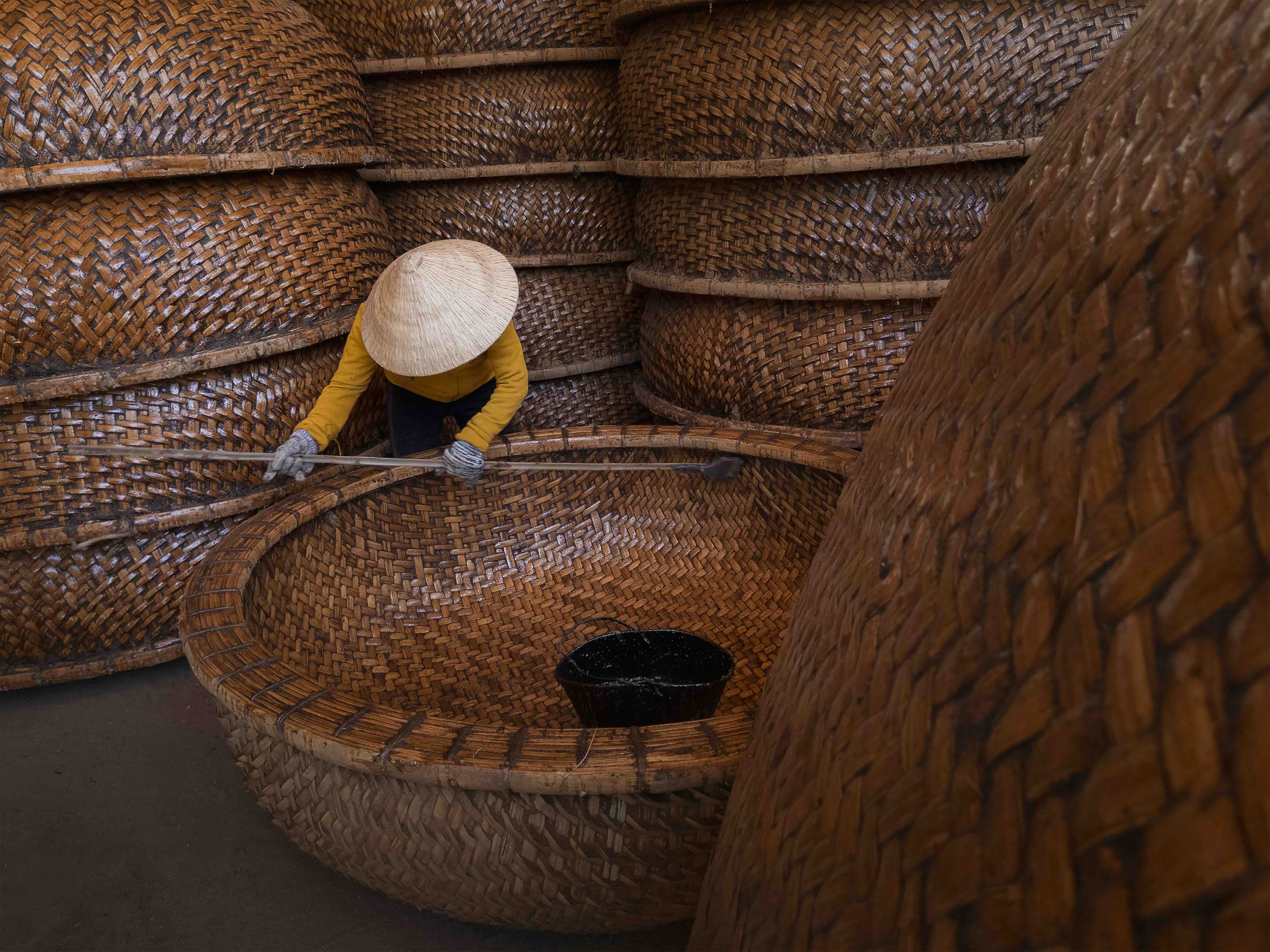 Một chi tiết mà chúng tôi không khỏi bất ngờ đó là để bịt kín các khe hở giữa những sợi tre, người thợ phải dùng… phân bò. Loại vật liệu tưởng chừng bỏ đi này lại có tính kết dính tốt, rẻ tiền và dễ tìm. Sau khi trét lên bề mặt, chiếc thuyền được đem phơi nắng cho lớp trám khô lại. Công đoạn cuối cùng cũng là bước quan trọng nhất chính là quét dầu rái. Đây là loại nhựa tự nhiên được lấy từ cây dầu rái, có tác dụng chống thấm nước và tạo độ bóng cho bề mặt. Nhờ lớp dầu này, thuyền thúng có thể vững vàng thả mình trên sóng biển mà không lo bị ngấm nước.