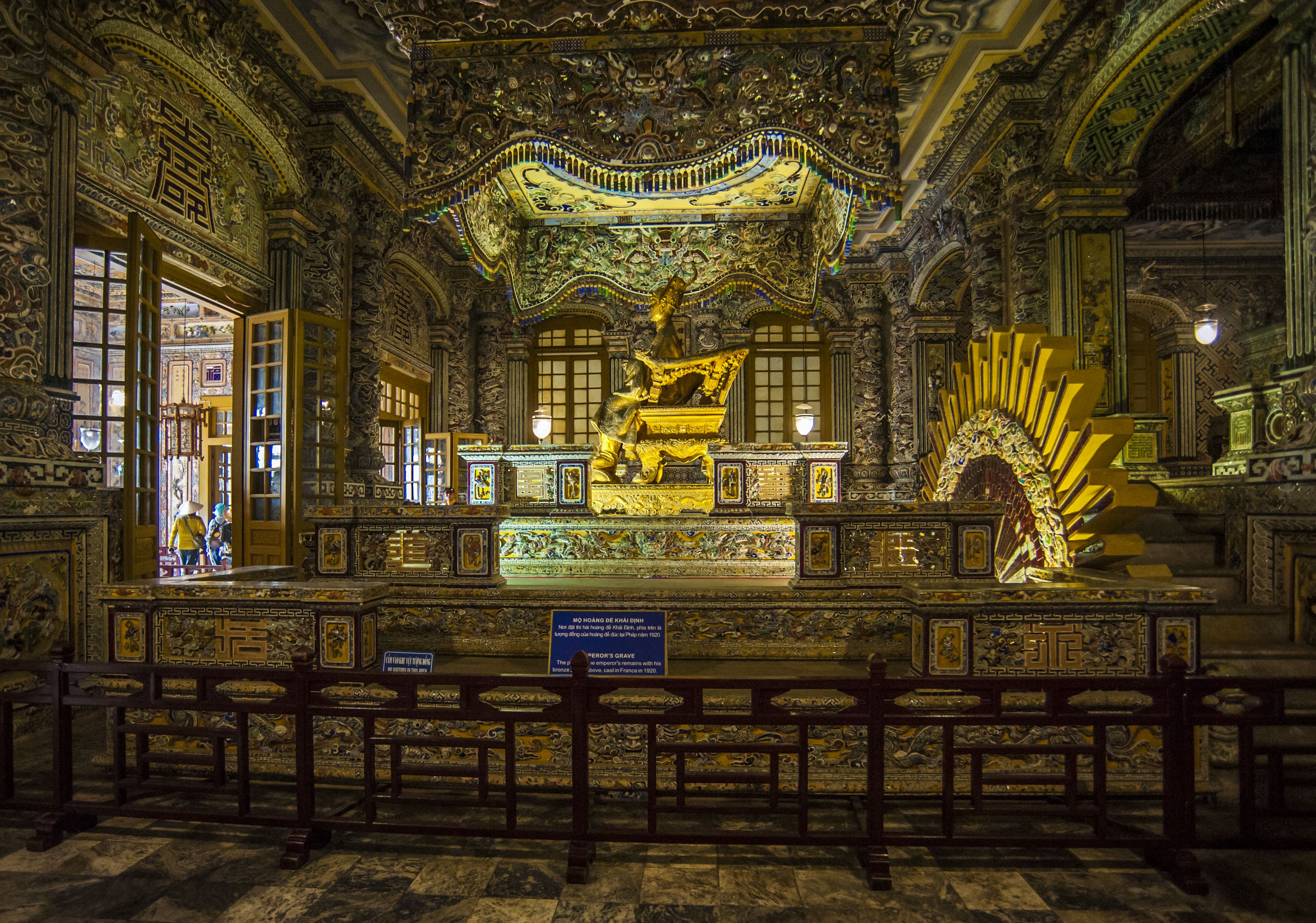 Có lẽ, đỉnh cao của nghệ thuật mosaic thể hiện trong kiến trúc nội thất của lăng Khải Định. Lúc đang sống, năm 1920, vua Khải Định đã lo việc xây lăng cho mình. Lăng cách kinh thành Huế khoảng 8km về phía nam. Vua Khải Định đã huy động các thợ giỏi trong nước để xây lăng. Ông cho nhập từ Pháp xi măng, sắt, thép, ngói và các đồ sứ, thủy tinh màu từ Trung Quốc, Nhật Bản, bên cạnh những đồ sứ đẹp của Việt Nam. Công trình lăng vì thế mà lộng lẫy, công phu và phải kéo dài tới 11 năm sau mới hoàn thiện.