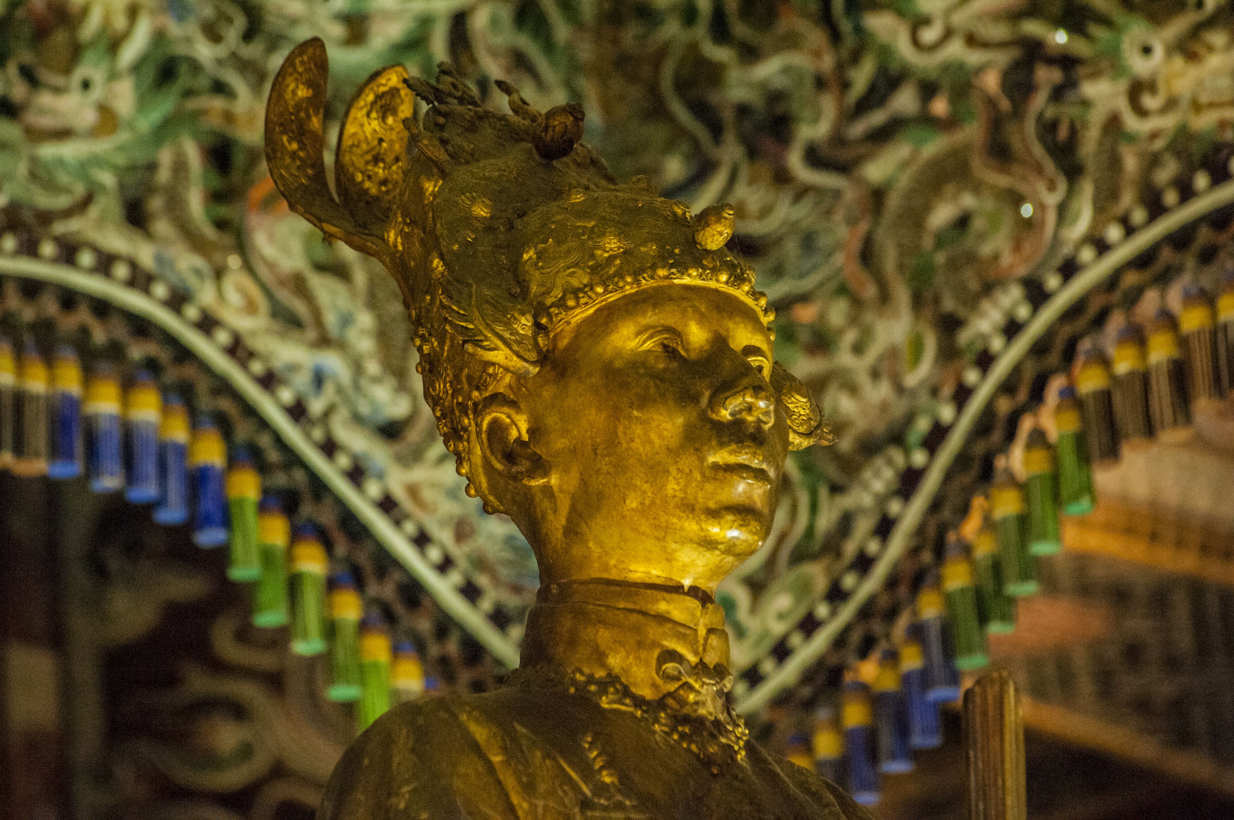 Nghệ thuật mosaic trang trí nội thất trong cung Thiên Định, nơi có điện Khải Thành và phần mộ nhà vua, bên trên có tượng vua. Nghệ thuật mosaic thể hiện ở hàng trăm bức tranh ghép mảnh sứ, thủy tinh màu trang trí trong các ô hộc ở án thờ, thân cột, các bức tường.