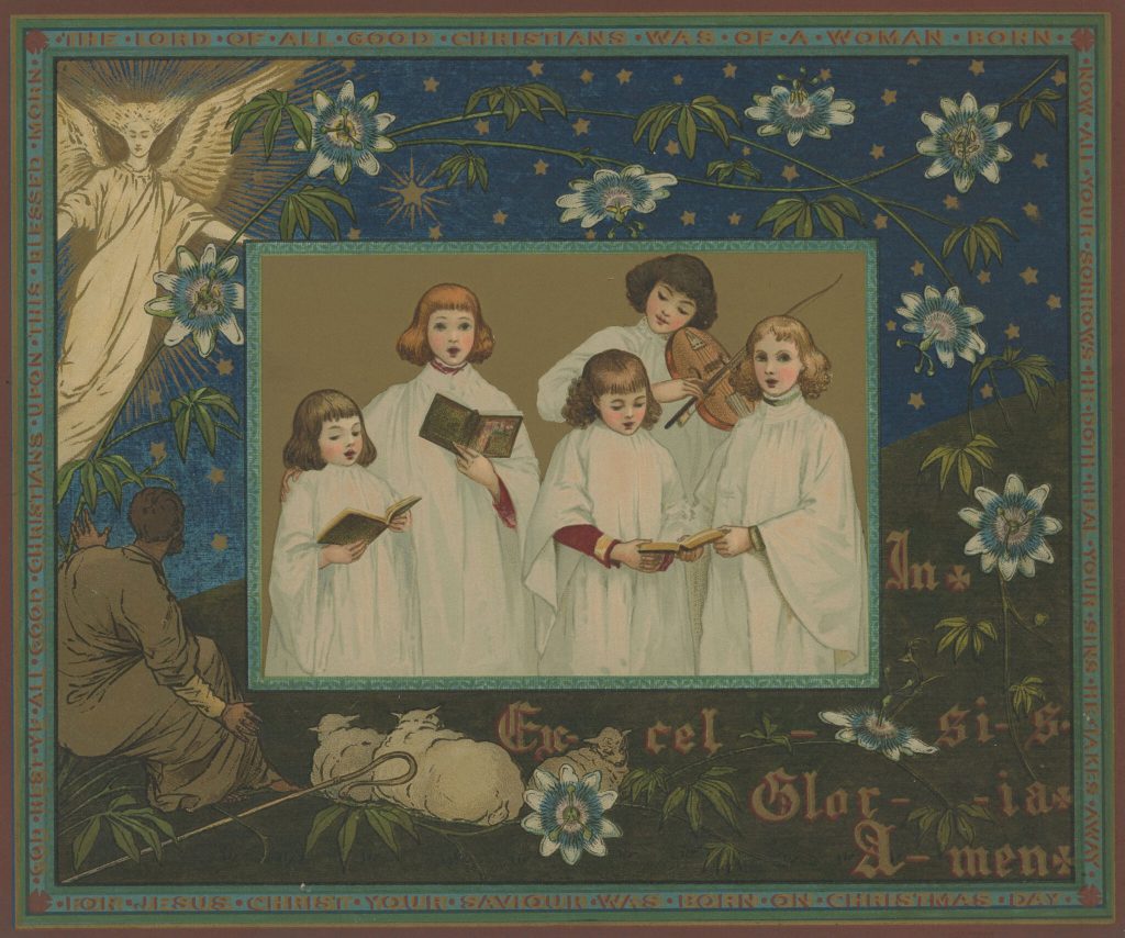 Thẩm mỹ thời Victoria của thế kỷ 19 đã góp phần tạo ra những biểu tượng tiềm thức gắn liền Giáng Sinh, từ chim hồng tước, chim cổ đỏ, cây chi bùi, cây thường xuân, nhà thờ và phong cảnh tuyết đến khung cảnh nghi lễ trong nhà và việc tặng quà, trang trí cây, Thánh Nicolas… Tuy nhiên, do in thạch bản và thợ chuyên nghiệp tô màu bằng tay nên giá thành sản xuất thiệp bấy giờ khá đắt đỏ. Vào năm 2001, một trong 12 bản in gốc tấm thiệp của Horsley được bán với mức giá kỷ lục 22.500 bảng Anh. Bên cạnh giấy, từng có giai đoạn chất liệu vải ren dùng để làm thiệp.