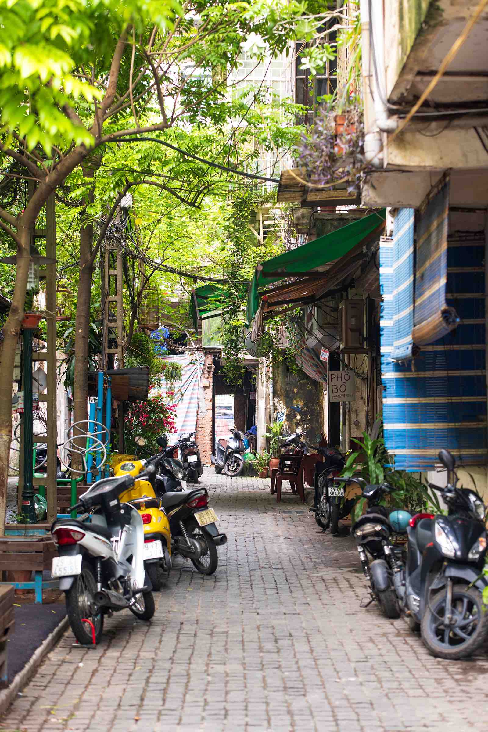 Những ngõ nhỏ có khi tạo ra nhiều không gian bất ngờ là những giếng trời, khoảnh sân trong giữa các lớp nhà, chẳng những có tác dụng thông gió, chiếu sáng bên trong mà còn là trung tâm sinh hoạt của mỗi ngôi nhà. Một hòn non bộ bên khung cửa nhỏ, một bóng cây đơn sơ ôm ấp đời sống kín đáo: “Mỗi ngõ nhỏ giấu một lời tâm sự” (Trở lại trái tim mình – thơ Bằng Việt). Những ngõ nổi tiếng đã đi vào thơ nhạc họa như ngõ Phất Lộc, Sầm Công (nay là ngõ Đào Duy Từ), Hàng Chỉ, Hàng Bút… hay có phố mà lại tên là Ngõ Gạch vốn là khúc sông Tô Lịch cũ. Nhiều phố và ngõ giữ lại tên làng xóm cũ như phố Yên Thái, Báo Khánh… hay đơn giản là địa danh các cầu, chợ: Cầu Đông, Cầu Gỗ, Chợ Gạo, Tạm Thương.