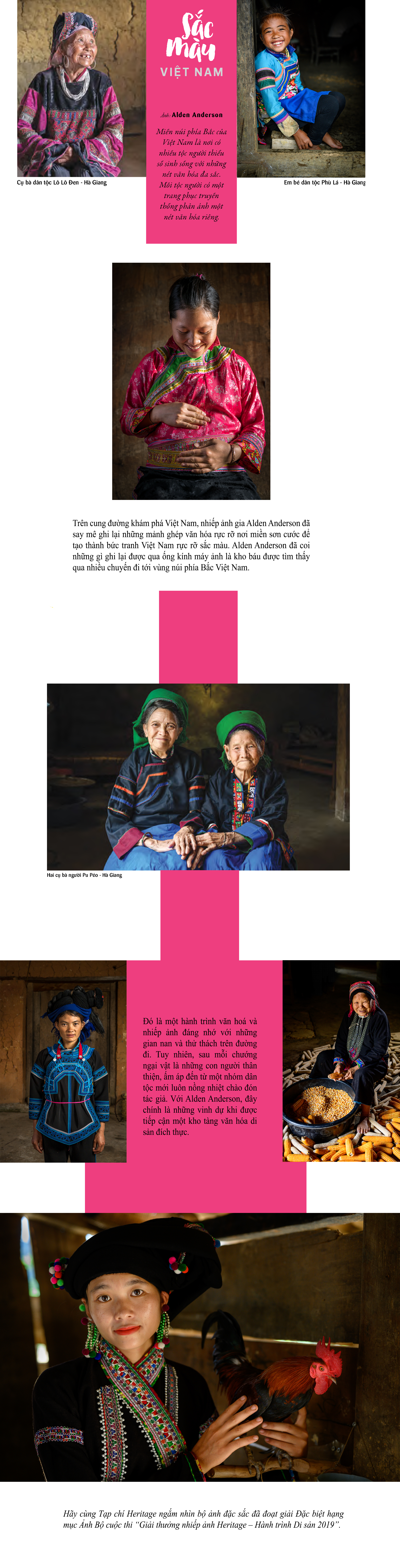 Với những thiết kế lấy cảm hứng từ núi non, các đường xếp lớp và phom dáng được xử lý khéo léo nhằm gợi liên tưởng đến cảnh dãy núi trùng điệp, kết hợp cùng họa tiết hoa sen, hoa mai, hoa lan, vốn là những loài hoa quen thuộc trong mỹ học Á Đông. Trong khi đó, cảm hứng sông nước được thể hiện qua những phom dáng mềm mại, uyển chuyển cùng các chi tiết thêu tay mô phỏng sóng nước.