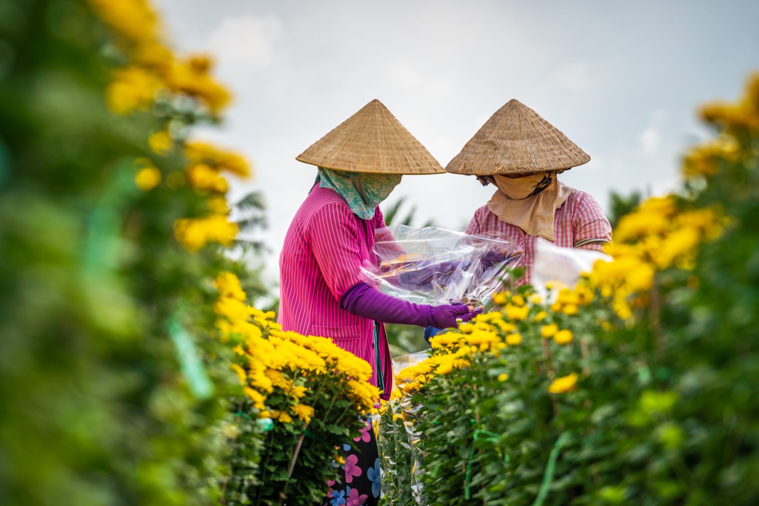 Theo lịch trình hàng năm, từ ngày mùng 10 tháng Chạp, những vườn hoa đặc biệt đông đúc nhân công. Họ vốn dĩ làm những công việc khác nay tập trung về làng hoa để làm theo thời vụ. Đủ mọi lứa tuổi từ trẻ đến già tham gia vào nhiều công đoạn khác nhau của nhà vườn như lãi chèo (nhặt bỏ những chồi nhỏ trên nhánh chính hoặc bông phụ), cắm nẹp, đóng thùng, vận chuyển… Vừa làm họ vừa tranh thủ trò chuyện, tiếng cười nói, tiếng gọi nhau, tiếng xe cộ càng làm cho không khi thêm náo nhiệt.