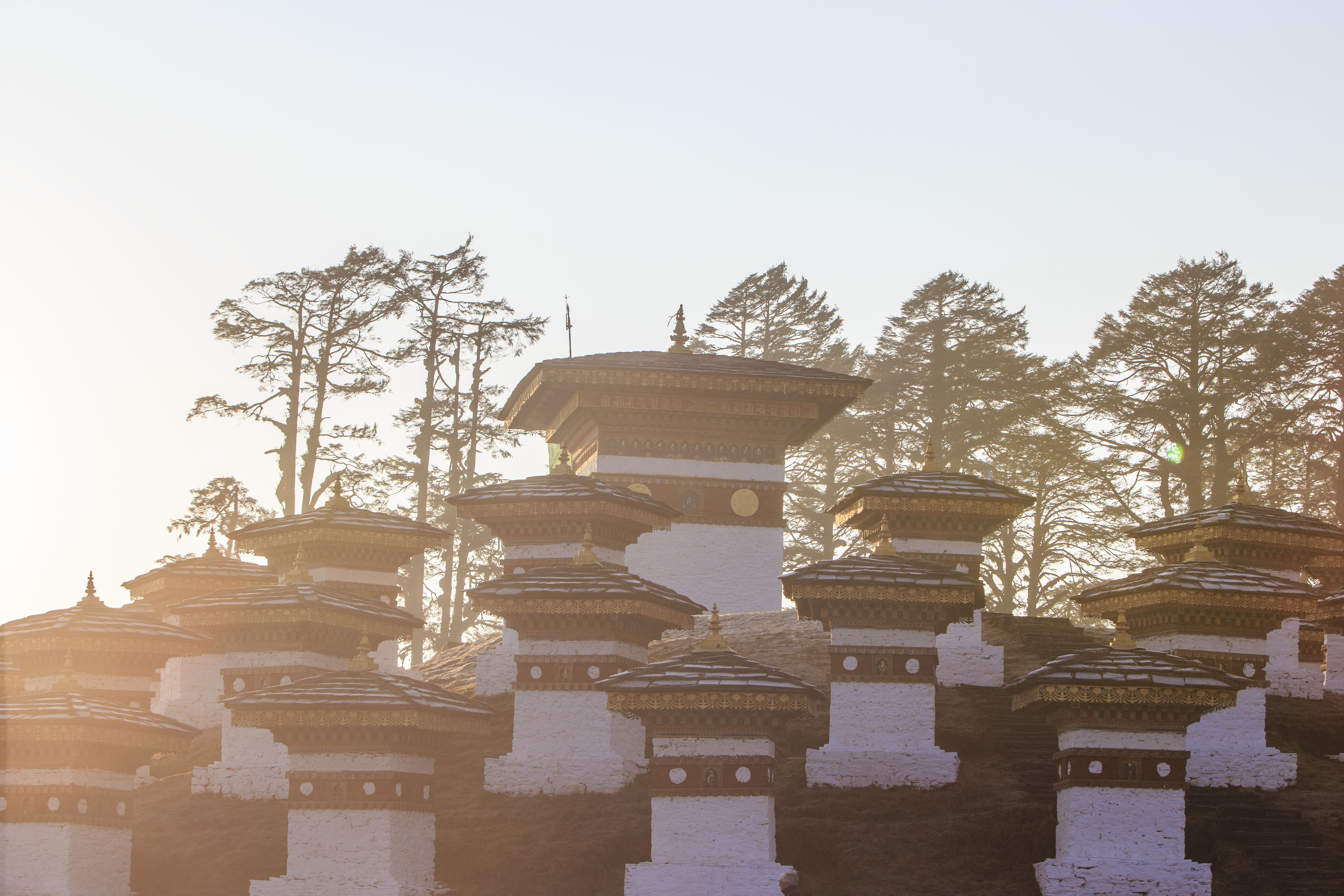 Nằm trên đường đi từ cố đô Phunakha về thủ đô Thimphu, trên đèo Dochula cao 3.100m là cụm 108 bảo tháp có tên Druk Wangyal, được xây để ghi dấu chiến thắng của vua Jigme Singye Wangchuck, và tưởng niệm những người lính Bhutan hy sinh trong trận chiến chống lại quân nổi loạn từ bang Assam (Ấn Độ).