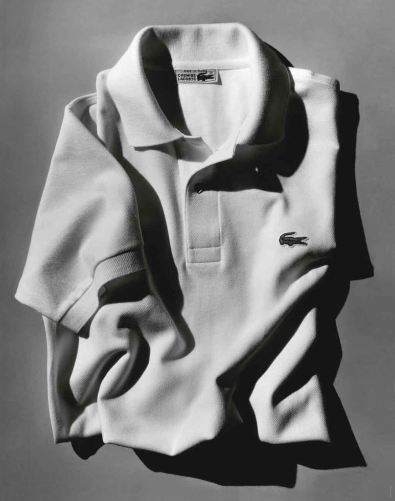 Sản phẩm nổi trội của hãng thời trang thể thao này là chiếc áo polo với logo cá sấu. Bắt đầu từ chiếc áo thun từng được René Lacoste mặc khi thi đấu, áo polo của Lacoste có độ co dãn tốt, nhẹ và thoáng mát, được làm từ một loại vải hoàn toàn mới được gọi là “petit piqué”. Kỹ thuật dệt và xe sợi tạo nên vải áo là một bí quyết mang tính cách mạng của hãng. Nhưng qua năm tháng, áo polo Lacoste đã trở thành một biểu tượng thời trang thực thụ. Sự linh hoạt và dễ chịu của chất liệu “petit piqué” đã giúp cho chiếc áo polo này vượt qua giới hạn trang phục thi đấu, chinh phục mọi khách hàng. Tính phổ biến của chiếc áo đã lan rộng khắp thế giới, không chỉ bởi sự thoải mái mà còn bởi phong thái đơn giản nhưng không kém phần lịch lãm.