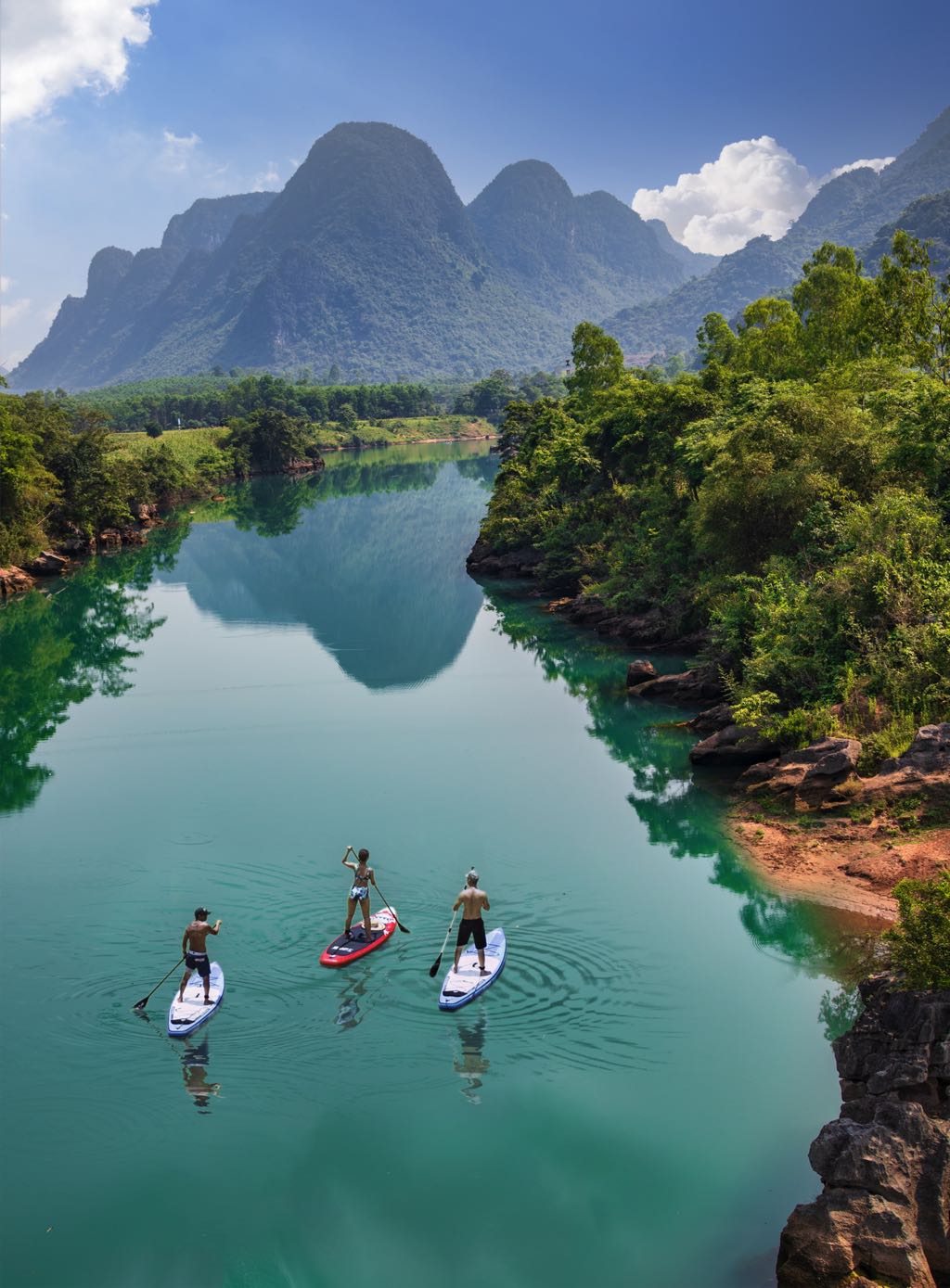 Cũng là tour trekking băng rừng, vượt suối, tắm sông, nhưng “Follow the River” là tên một tour mang lại trải nghiệm khác lạ hơn trên dòng sông với môn chơi ván chèo đứng bơm hơi – SUP.