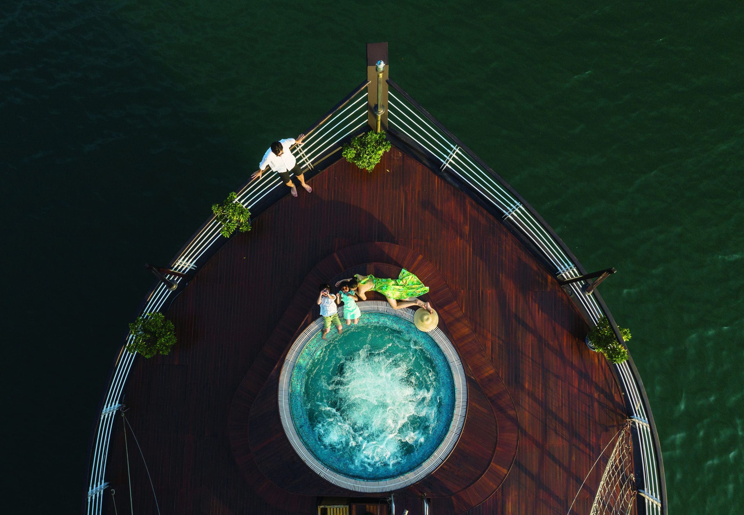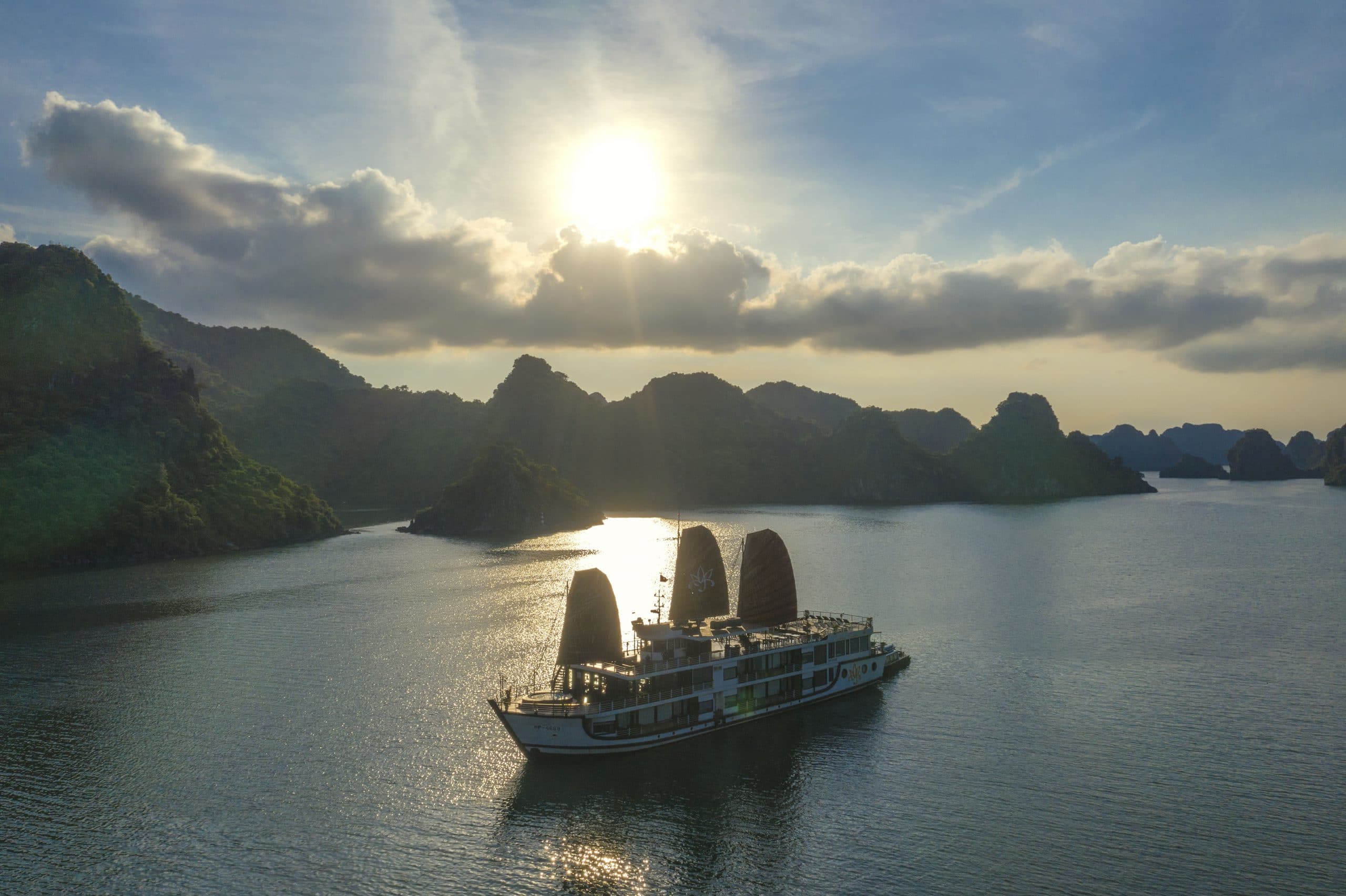 Sau các hoạt động trải nghiệm như chèo thuyền Kayak lách qua các khe núi để thưởng ngoạn hang động, khoảnh khắc tuyệt đẹp mà đôi lứa nào cũng mong chờ nhất khi nghỉ trăng mật ở Lan Hạ là thời khắc hoàng hôn, khi ánh mặt trời màu tím dần buông xuống những dãy đá vôi rêu phong xanh mướt, tạo nên khung cảnh đắm say trên mũi du thuyền, cùng tiếng nhạc và những ly cocktail nhiệt đới nồng nàn.