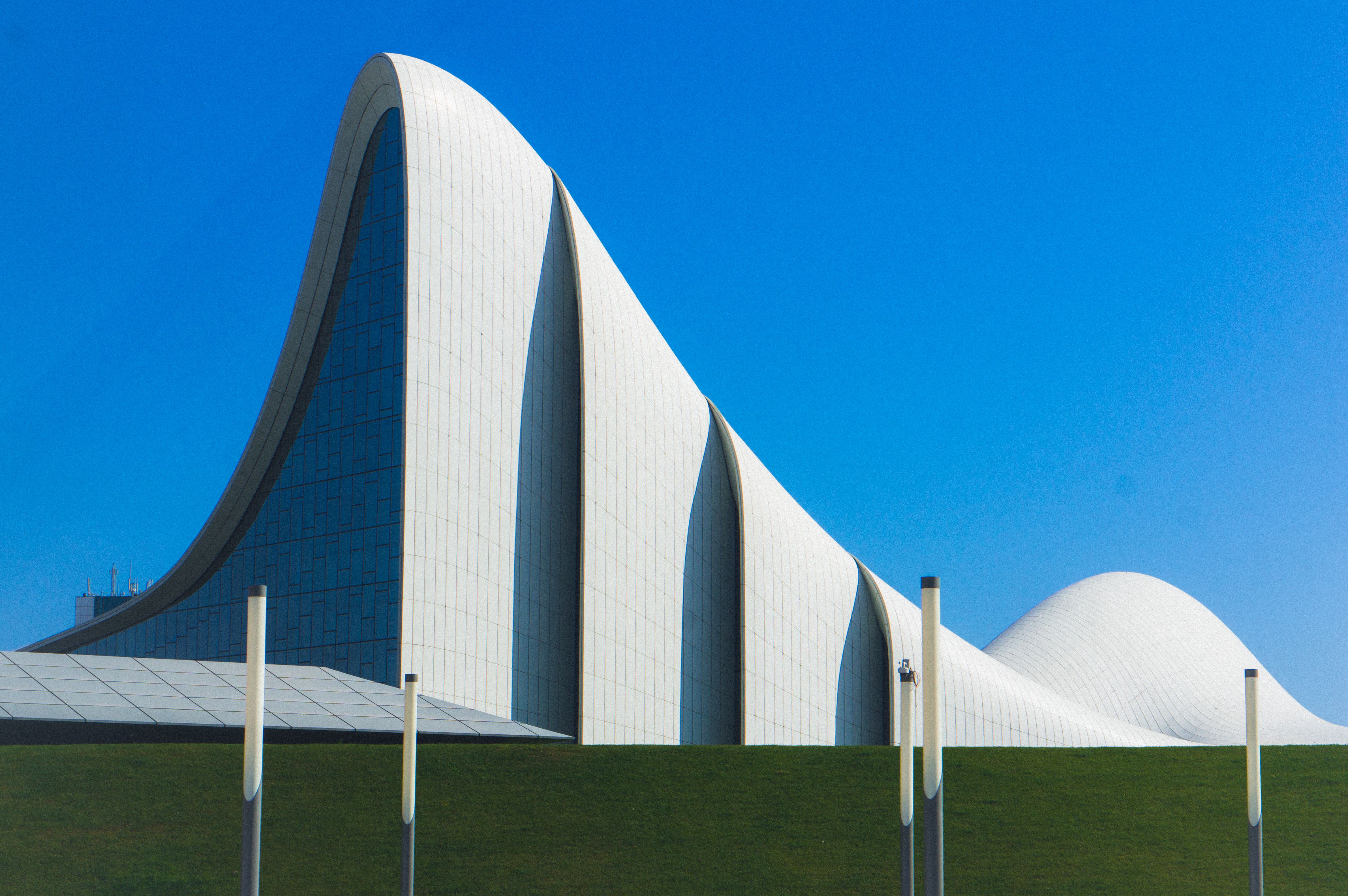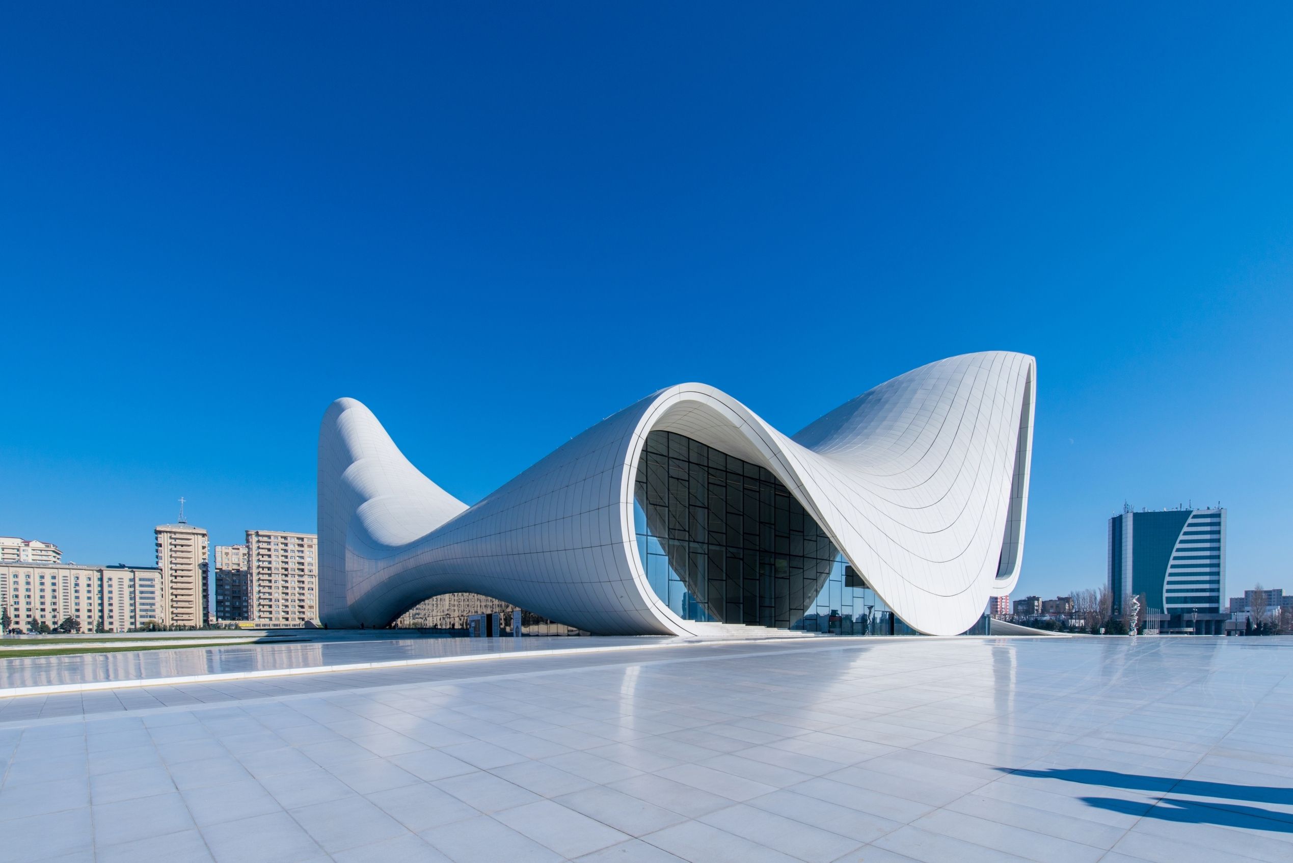 Trung tâm Heydar Aliyev được khánh thành năm 2012, trở thành một công trình biểu tượng của kiến trúc lấy cảm hứng từ các chuyển động của tự nhiên như dòng chảy của nước. Đây là một đặc điểm của phong cách kiến trúc của kiến trúc sư Zaha Hadid, người phụ nữ đầu tiên làm chủ tịch Hội Kiến trúc sư Quốc tế và giành giải thưởng danh giá Pritzker, khi bà theo đuổi các thiết kế có tính hoành tráng và gợi cảm.