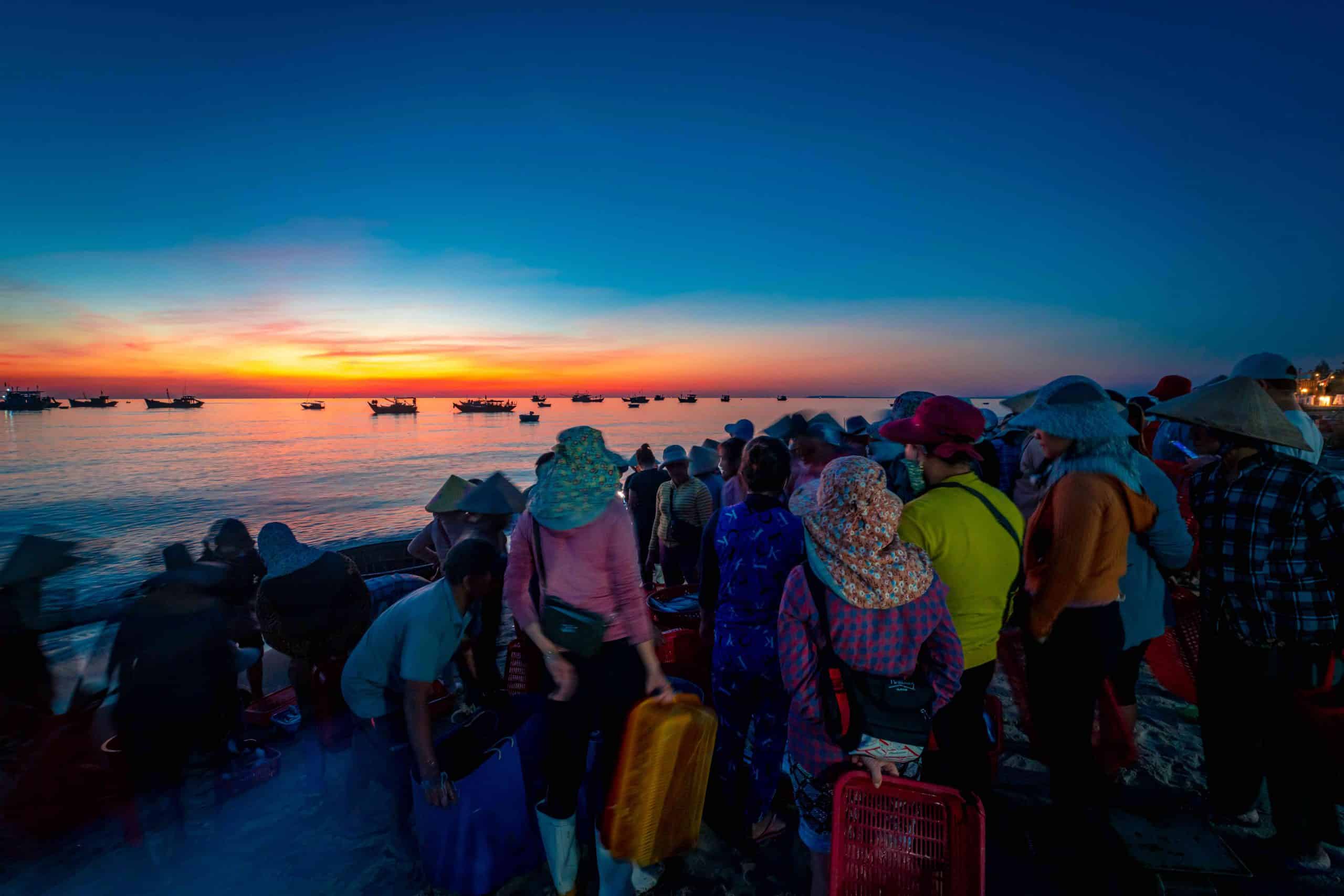 Mỗi vùng biển, mỗi mùa theo con nước và phương thức đánh bắt sẽ thu hoạch được những loại hải sản khác nhau. Nếu ngư dân đi thuyền trong ngày thì đánh bắt hải sản gần bờ, có tôm he, tôm bộp, cua, ghẹ, mực ống, mực nang, cá lanh, cá hồng, cá nục, cá trích, cá cơm… Tiểu thương theo đó sẽ lựa chọn mặt hàng muốn buôn bán để tiếp cận, trả giá rồi thu mua, có khi họ bán lại cho khách ngay trên bờ biển, có khi lại chở ra những khu chợ dân sinh quy mô to hơn. Cũng có những chủ lò nước mắm, họ ra chợ cá để chọn nguồn nguyên liệu tươi – điều kiện tiên quyết để có những mẻ nước mắm thơm ngon, đượm vị.
