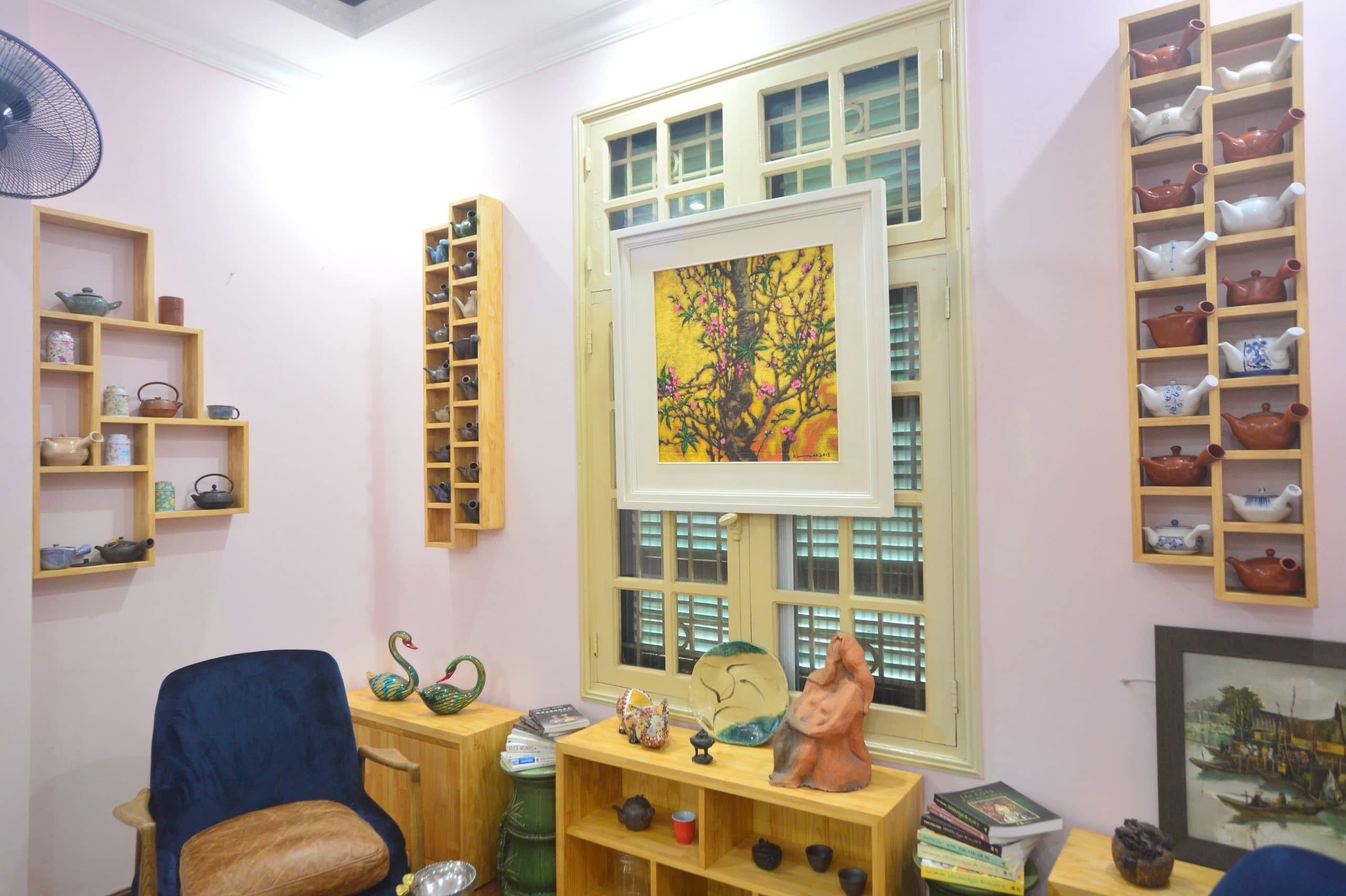Nhưng trước hết chúng là những kỷ vật xinh xắn và độc đáo, mang hơi thở văn hóa của khắp mọi nơi về làm đẹp cho ngôi nhà nhỏ kề bên Văn Miếu ở Hà Nội. Ngoài những chiếc ấm thường dùng để cùng bằng hữu thưởng thức Ô Long, Hồng trà, Đông phương mỹ nhân… chủ nhà đã bài trí hàng trăm ấm trà trên giá gỗ sát tường để làm đẹp không gian. Tất nhiên đã là sắp đặt như vậy thì rất mất công lau dọn hàng ngày, nhưng có sao đâu, bởi với người yêu đồ gốm thì mỗi lần lau chùi, nâng trên tay món đồ lại là một dịp được sống lại với kỷ niệm xưa.