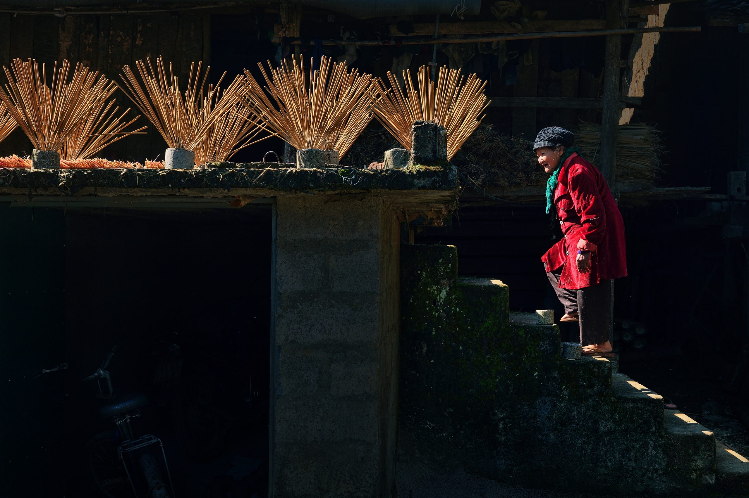Những tháng cận Tết, đến Phia Thắp càng cảm nhận rõ hơn không khí hối hả của bà con dân tộc Nùng nơi đây khi trẻ em, người lớn và các cụ già đều tham gia vào những công đoạn làm hương. Tôi ghé hiên nhà hỏi thăm một cụ già tóc bạc phơ đang phơi hương thành phẩm, cụ dừng tay tiếp chuyện hồ hởi. Cụ kể rằng không biết rõ nghề truyền thống này có từ đời nào, nhưng ước chừng cũng hàng trăm năm tuổi. Từ khi còn bé , cụ đã học cha mẹ, ông bà vót que, làm bột, se hương…