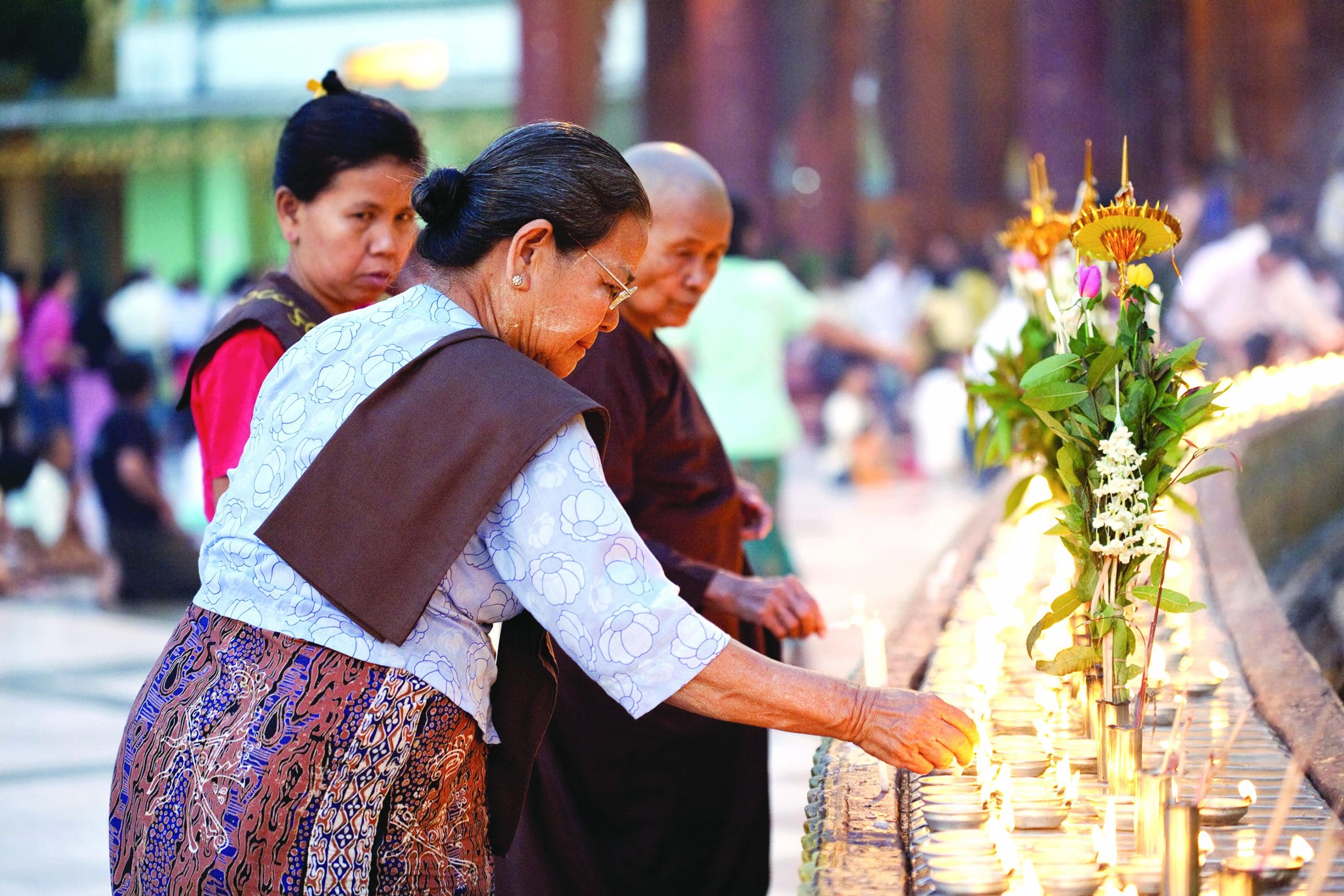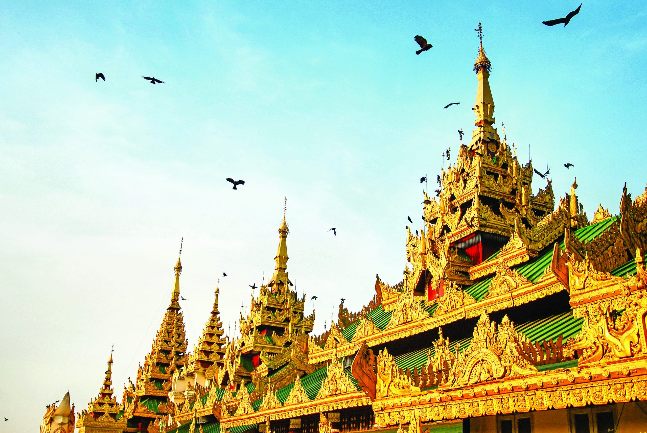 Yangon là nơi hội tụ của những ngôi chùa cổ nhất và thiêng liêng nhất của quốc gia thành kính Phật giáo này, trong đó có ba ngôi chùa – Shwedagon, Botataung và Sule – tương truyền được xây dựng khoảng 2.500 năm trước đây. Nếu bạn chỉ đủ thời gian để ghé thăm một khu di tích tại Yangon, hãy lựa chọn chùa Shwedagon – đặc biệt vào lúc hoàng hôn. Bảo tháp chính cao 99 mét, được bao phủ bằng vàng. Truyền thuyết kể rằng nơi đây cất giữ những sợi tóc của Đức Phật Gautama, trên đỉnh chóp bảo tháp được đính kim cương đầy tinh xảo. Nằm trên một ngọn đồi, Shwedagon mang đến cho du khách một bức tranh tuyệt đẹp của thành phố Yangon từ trên cao. Các nhà sư mặc áo cà sa và nữ tu trong bộ áo choàng màu hồng lại càng làm tôn thêm vẻ đẹp nơi đây.