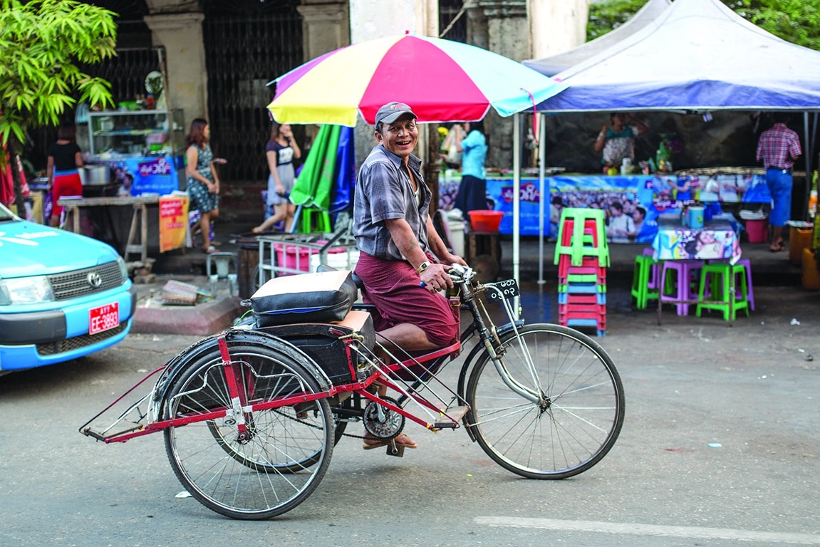 Một phần không thể thiếu trong mỗi kỳ nghỉ chính là việc nếm thử những món ăn địa phương. Là ngôi nhà chung của hơn 135 dân tộc anh em, cộng thêm đường biên giới giáp với Thái Lan, Lào, Trung Quốc, Ấn Độ và Bangladesh, Myanmar tự hào sở hữu một trong những nền ẩm thực đa dạng nhất trong khu vực. Yangon luôn tấp nập những quán hàng phục vụ những bữa ăn ngon, những chiếc xe đẩy bán đồ ăn vặt và trà. Khách hàng dùng bữa trên ghế nhựa thấp ngoài đường phố. Hãy tìm tới những quán ăn đông đúc để đảm bảo rằng thực phẩm luôn tươi ngon. Một món ăn mà bạn phải thử là Mohinga – một món hầm với sợi mỳ trong suốt, cá và bột đậu xanh, kèm với bột nghệ, hạt tiêu và sả. Món ăn tuyệt vời này được phục vụ vào buổi sáng tại 118 Yay Tar Shay Old Street. Một món ăn khá lạ miệng nữa là Laphet Thohk và salad trà xanh, được làm từ lá trà ngâm chua, hạt đậu, đậu phộng và tỏi chiên. Một nơi ưa thích để thử Laphet Thohk và thưởng thức món trà sữa và trà khói ngọt nổi tiếng của Myanmar là Tea House Rangoon, 77 Pansodan Street.