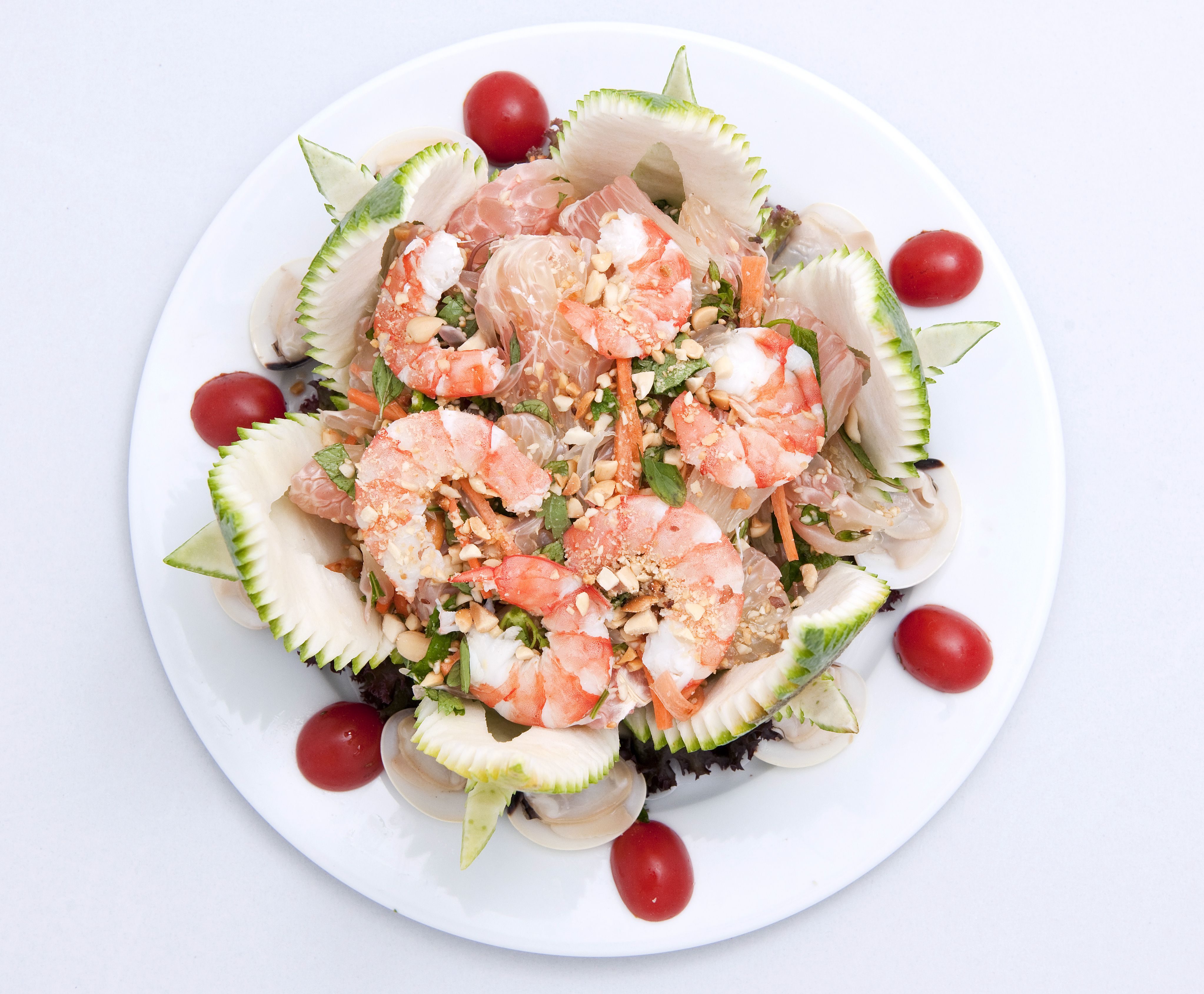 Bởi thế mới đòi hỏi đĩa xôi được nấu sao cho từng hạt gạo nếp đều chằn chặn, căng mẩy, bát canh măng phải có nước dùng trong veo, nhìn rõ những củ hành mới cắt và khúc chân giò ninh kỹ. Mùa nào thức ấy, người Việt tài hoa từ bao đời nay đã biết sử dụng rất nhiều sản vật ngoài thiên nhiên để đưa vào mâm cơm gia đình, cộng thêm một chút công sức gia giảm, tỉa cắt là đã thành bữa ăn nhiều màu sắc. Bông hoa tỉa từ quả cà chua, carot, ớt tuy không có giá trị ẩm thực nhiều nhưng không thể thiếu cho mâm cơm. Những bà mẹ đảm đang vẫn dạy con gái bài học cơ bản khi sắp mâm, trong đó không thể thiếu cách dùng rau xà lách làm nền cho khúc cá, tỉa lát carot, su hào cho đẹp mắt khi làm nước chấm nem… Chỉ dùng rau, củ, quả tô điểm cho món ăn, người Việt rất khác với phương Tây vốn thường lấy nước sốt làm phương thức chính để trang trí.