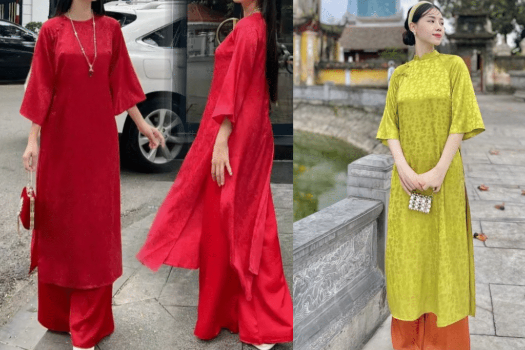 Những mẫu áo dài gấm suông kết hợp cùng các gam màu pastel nhẹ nhàng như hồng nhạt, xanh bạc hà, vàng đồng không chỉ mang đậm dấu ấn truyền thống mà còn toát lên vẻ đẹp hoài niệm. Đây là sự lựa chọn hoàn hảo cho những cô nàng yêu thích sự dịu dàng, thanh thoát mà không kém phần sang trọng. Khi diện áo dài gấm suông, bạn sẽ cảm thấy như được hòa mình vào không gian Tết ấm áp, đậm đà bản sắc văn hóa dân tộc.