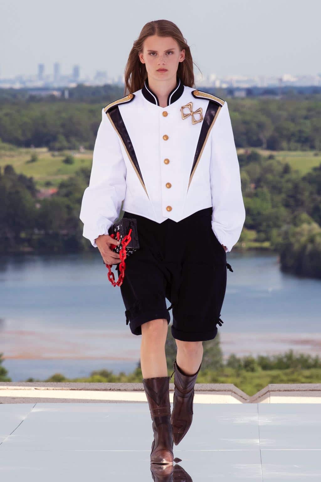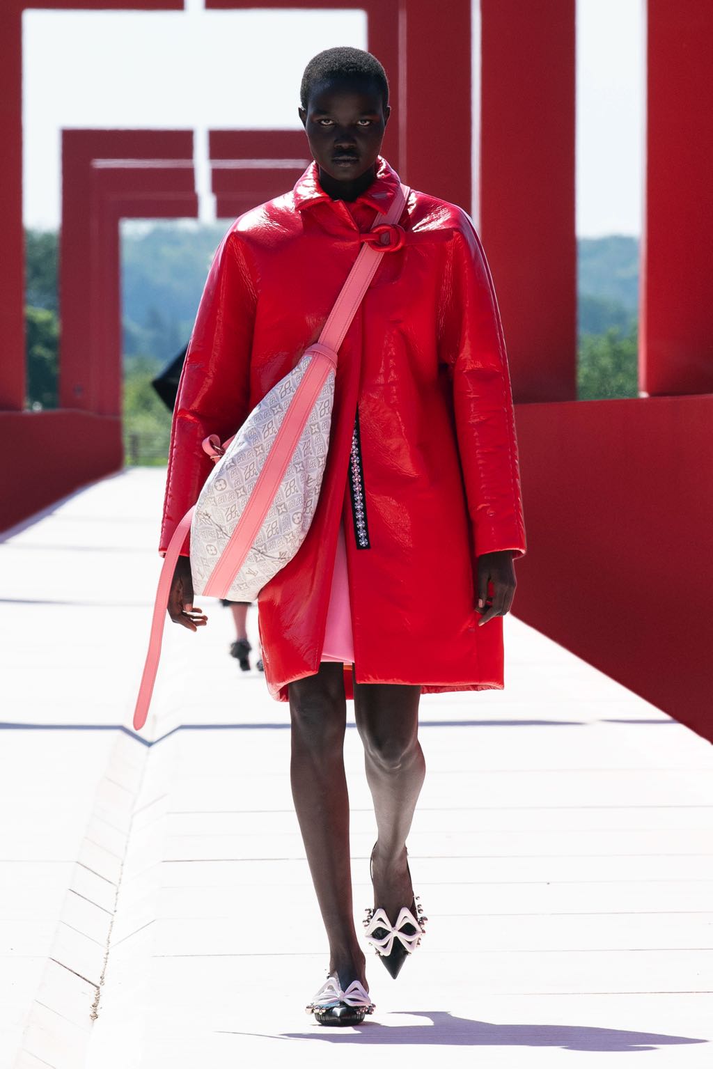 Khác với ý tưởng đi ngược về quá khứ của Dior, Louis Vuitton mùa Cruise 2022 này lại đưa người yêu thời trang đến với một không gian mang cảm hứng siêu thực của tương lai. Với mong muốn tạo nên một trải nghiệm mãn nhãn cho giới mộ điệu, nhà mốt hàng đầu nước Pháp đã đem nghệ thuật lồng ghép vào nghệ thuật khi thực hiện show diễn của mình ngay tại tác phẩm kiến trúc độc đáo của nhà điêu khắc Dani Karavan mang tên “Axe Majeur” toạ lạc ở thị trấn Cergy – Pontoise, phía Bắc thủ đô Paris. Công trình dài 3,2km với những chiếc cột trụ đỏ ấn tượng nối nhau tựa như các cánh cổng liên kết không gian đa chiều đã làm nên một sàn diễn ngoạn mục, không thể phù hợp hơn với tinh thần của bộ sưu tập.