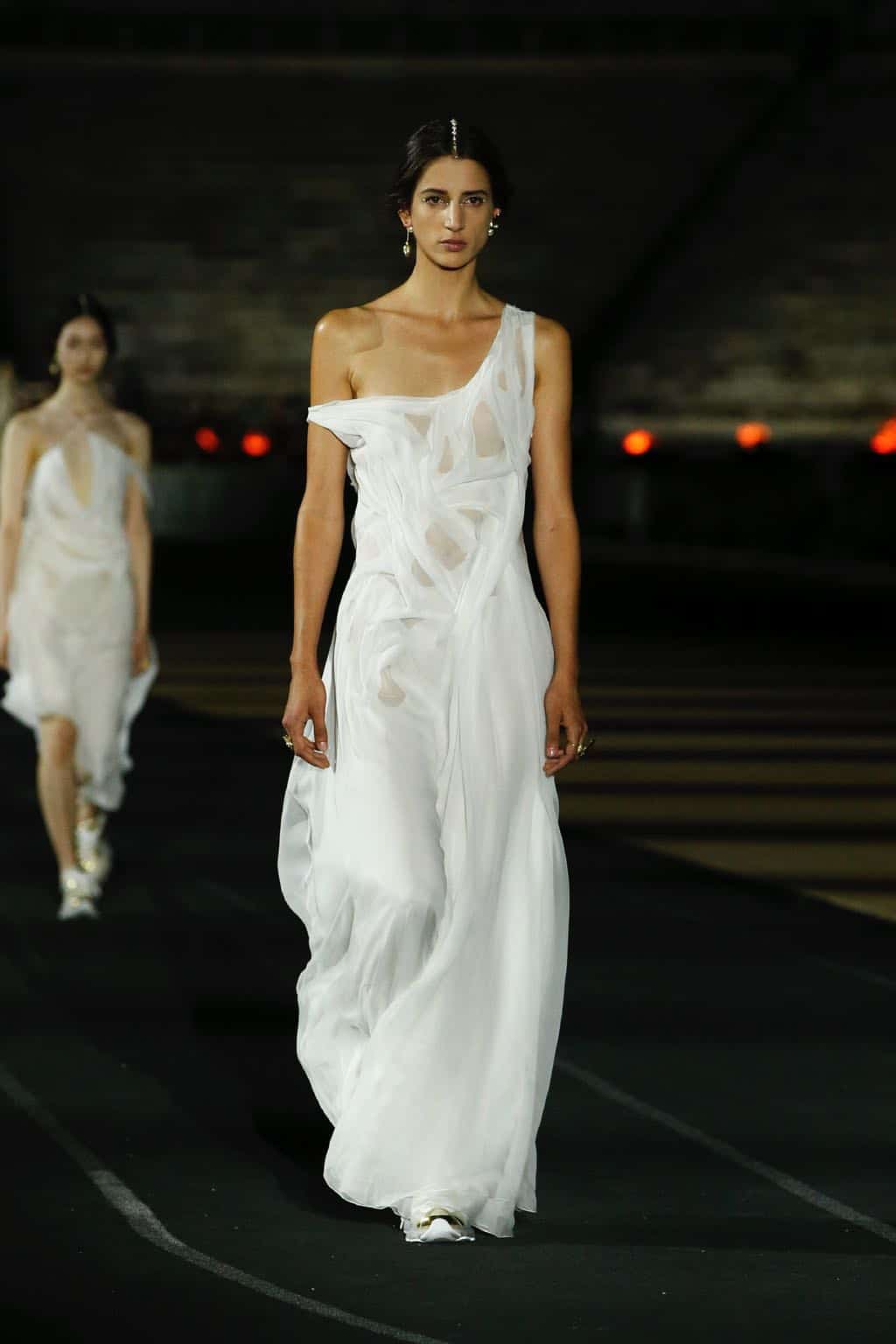 Sự kết hợp táo bạo của giày thể thao và váy dài thướt tha trong đêm diễn của Dior