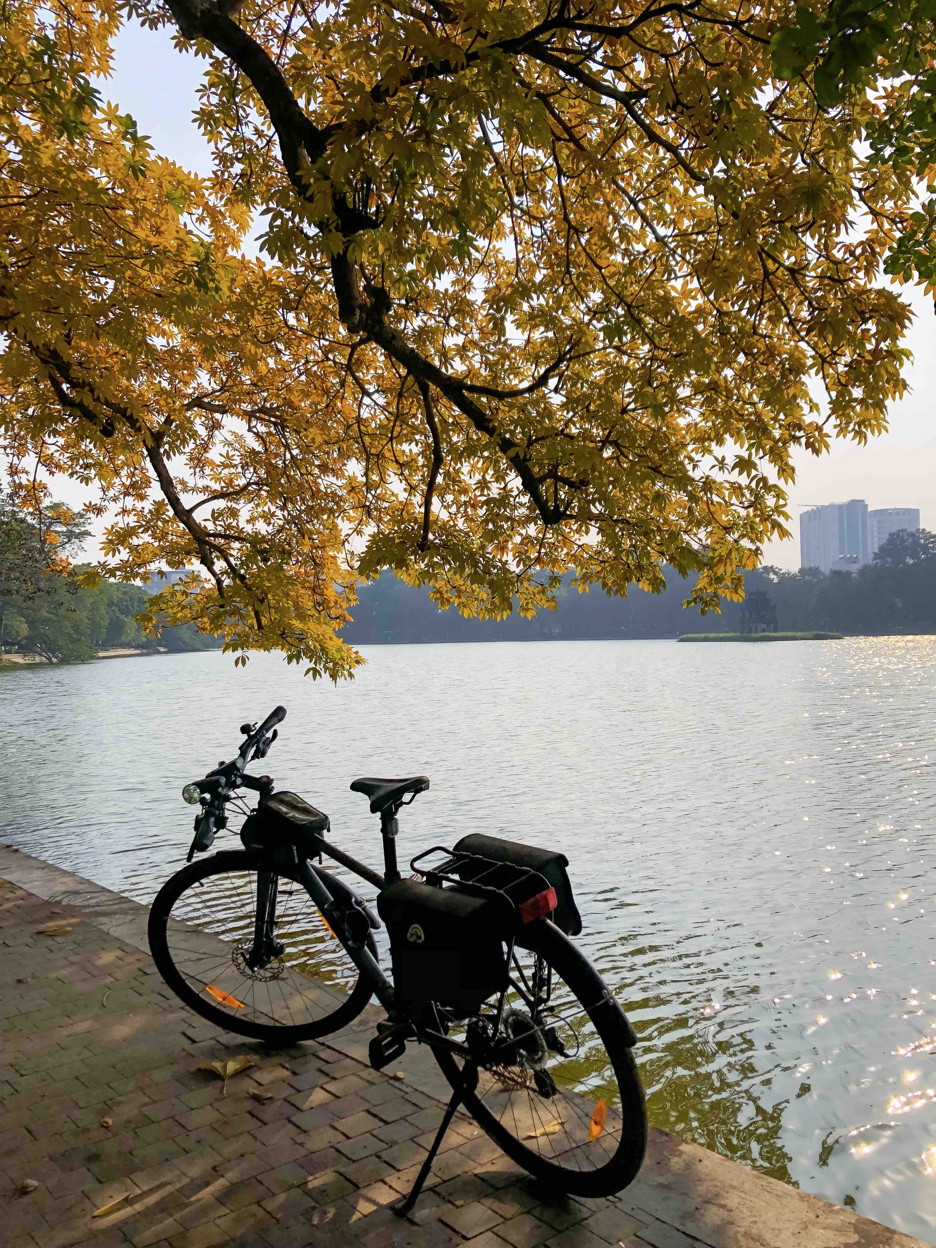 Ngoài ra, hồ Hoàn Kiếm ngay trung tâm thủ đô cũng nơi lý tưởng để đạp xe vào sáng sớm hoặc chiều muộn. Khi men theo con đường quanh hồ xanh tươi, bạn sẽ thích thú trước khung cảnh cầu Thê Húc và tháp rùa phản chiếu dưới làn nước trong xanh. Tour đạp xe đêm Thăng Long – Hà Nội lại mang đến cơ hội khám phá cảnh quan về đêm và tìm hiểu văn hóa, lịch sử thành phố thông qua các địa điểm du lịch nổi tiếng như bảo tàng, di tích lịch sử và phố ẩm thực đêm. Chuyến tham quan bằng xe đạp mất từ 90 đến 120 phút, xuất phát từ bảo tàng Mỹ thuật Việt Nam, sau đó đến Cột cờ Hà Nội – Hoàng Thành Thăng Long – quảng trường Ba Đình – Lăng Chủ tịch Hồ Chí Minh – tòa nhà Quốc hội – Phủ Chủ tịch – đền Quán Thánh – chùa Trấn Quốc – phố đêm Đảo Ngọc Ngũ Xã (để thưởng thức một số món ngon Hà Nội) – Cửa Bắc – cổng Ô Quan Chưởng – Nhà khách Chính phủ – bảo tàng Lịch sử Quốc gia Việt Nam – Nhà Hát Lớn Hà Nội.