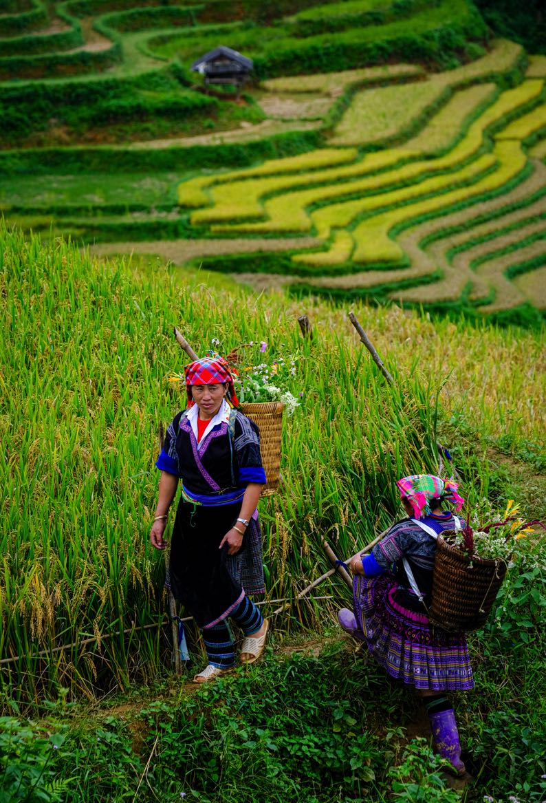 Tạm biệt Tây Bắc, chúng tôi lại vượt đèo hướng về Đông Bắc, đến với Hoàng Su Phì (Hà Giang) nơi có những ruộng bậc thang cổ nhất và cao nhất Việt Nam, cũng là điểm địa đầu kết thúc vòng cung ngắm lúa miền núi phía Bắc. Trái với những đoạn đường hiểm trở đầy thử thách mà cánh lái hay truyền tai nhau: “Nhất Su Phì, nhì Bắc Mê” thì bình lặng và dịu êm sẽ là cảm giác đầu tiên của du khách sau khi đặt chân tới đây. Không có cái náo nức của Mù Cang Chải (Yên Bái) hay rộn ràng sôi động của Sa Pa (Lào Cai), Hoàng Su Phì ghi dấu bởi lững lờ mây trôi ôm trọn dãy Tây Côn Lĩnh và yên ả dưới chân kia là bạt ngàn ruộng bậc thang. Xa xôi nhất như bản Phùng giáp biên nước bạn, hay ngược về bản Luốc, Hồ Thầu, Nậm Ty; nối tiếp nhau ruộng đâu nhà đấy, mùi hương lúa chín cùng hơi thở núi rừng bâng khuâng mời gọi. Trong số 23 xã của Hoàng Su Phì thì Thông Nguyên nức tiếng nhất. Với địa thế quần sơn tụ thủy, nơi hợp lưu của 3 con suối lớn (Phìn Hồ, Nậm Ông, Nậm Khòa) biến nơi đây thành một vùng bình nguyên được phù sa bồi lắng ngay lưng chừng núi. , Nhờ vậy mà lúa vẫn đượm vàng rực rỡ trĩu bông bất chấp địa hình ghập ghềnh quanh co. Hạt gạo Thông Nguyên hay những mâm xôi ngũ sắc cũng nhờ thế mà trở thành sản vật đặc trưng, tề danh cùng trà Shan Tuyết cổ thụ nồng đượm của xứ này.
