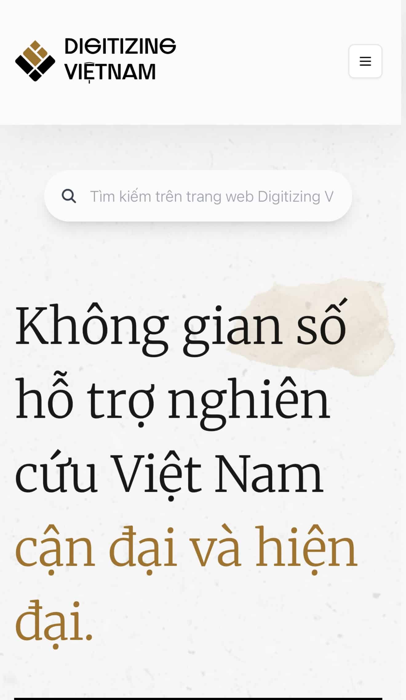 Digitizing Việt Nam hoạt động như một kho tài nguyên số và một không gian triển lãm trực truyến, được kiến tạo và duy trì bởi các đơn vị thuộc hai trường của Mỹ là Viện Nghiên cứu Đông Á Weatherhead tại đại học Columbia và Trung tâm Nghiên cứu Việt Nam tại đại học Fulbright Việt Nam. Digitizing Việt Nam cung cấp bộ sưu tập số hóa cận đại và hiện đại về Việt Nam, đóng vai trò như một nền tảng phát triển các công cụ nhân văn số tiên tiến để phân tích, mà khởi đầu là một công cụ chú giải nhằm hỗ trợ việc chú thích và dịch thuật kho lưu trữ Việt Nam cận đại. Dự án này được kì vọng sẽ thúc đẩy mạng lưới hợp tác và kết nối các nỗ lực “số hóa Việt Nam” khác nhau, nhằm tạo ra những chuyển biến mang tính toàn cầu trong lĩnh vực Nghiên cứu Việt Nam.