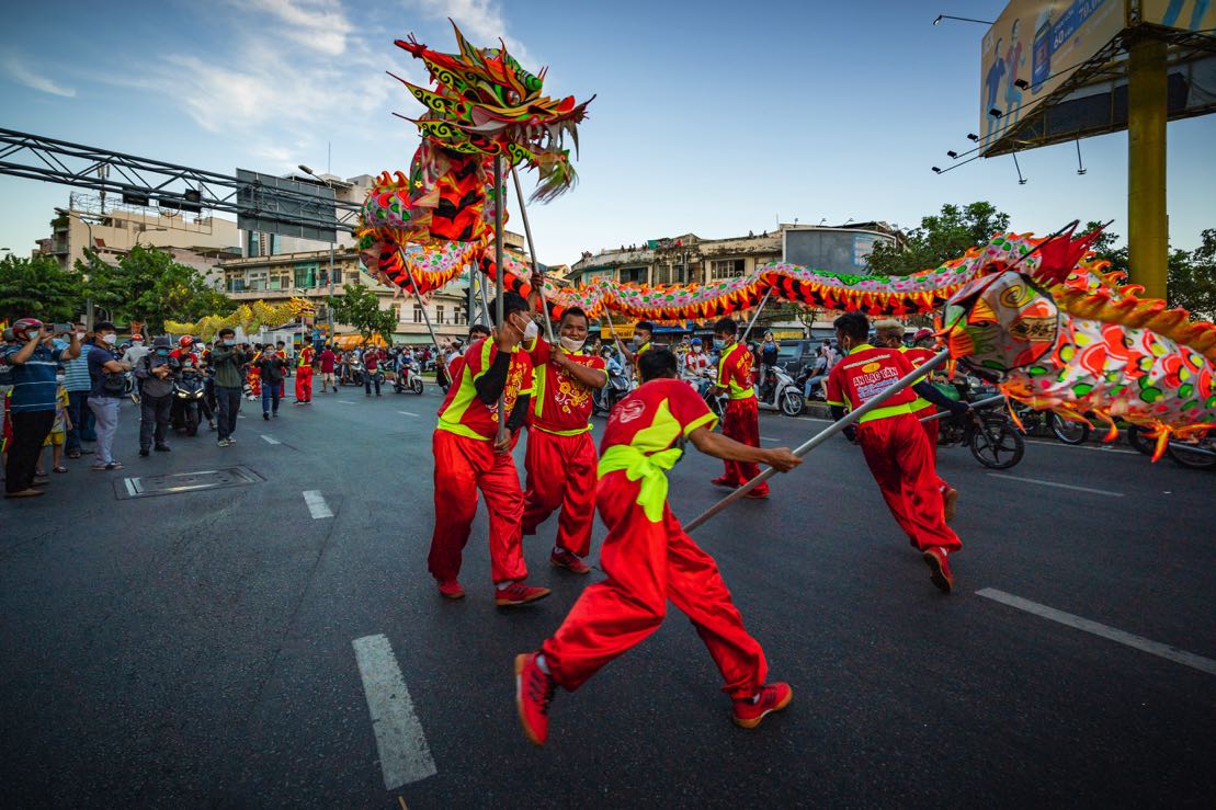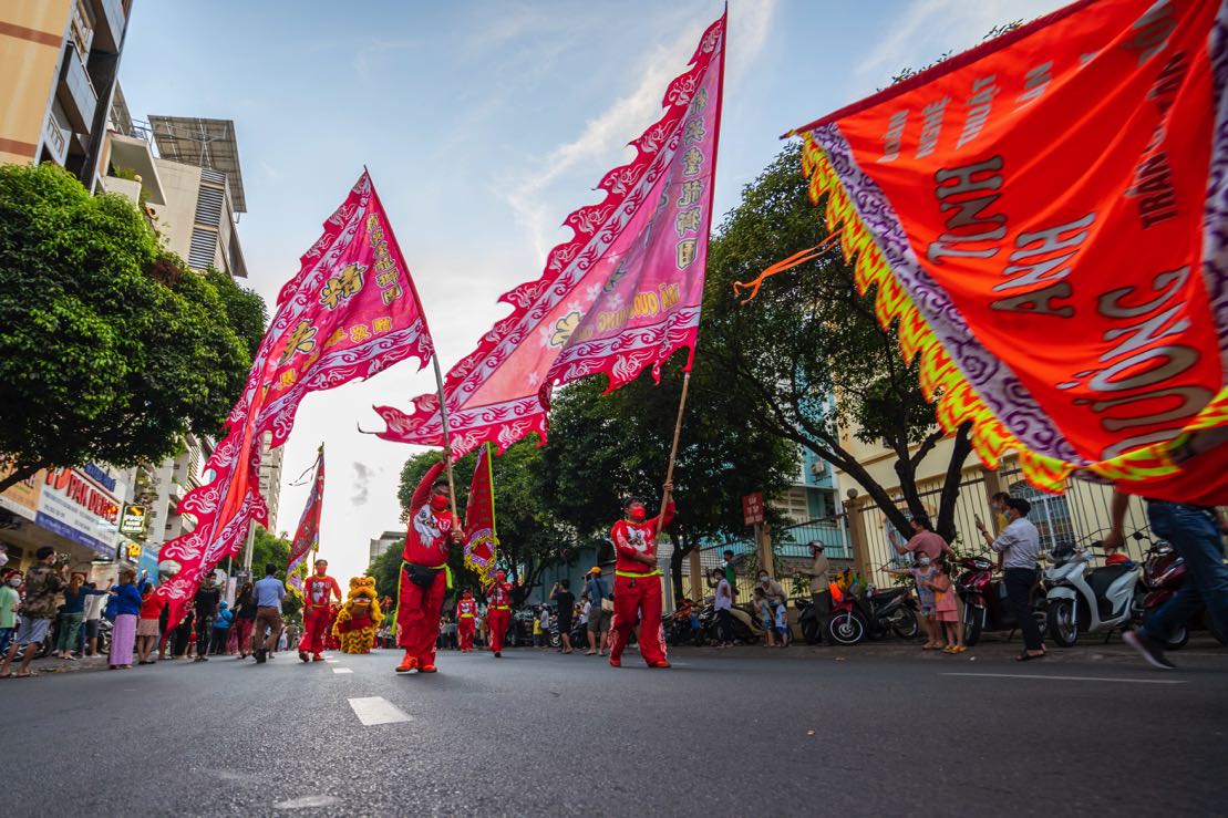 Tâm điểm của Tết Nguyên tiêu chính là lễ hội diễu hành trên đường phố, được tổ chức từ năm 1990, đến năm 2020, Tết Nguyên tiêu của người Hoa ở quận 5 được công nhận là Di sản văn hoá Phi vật thể cấp Quốc gia. Lễ hội được tổ chức hoành tráng với cả nghìn diễn viên hoá trang lộng lẫy thành các nhân vật quen thuộc trong văn hoá người Hoa như: Quan công, Ngọc hoàng, ba ông Phước – Lộc – Thọ, tiên ông, tiên nữ, lão ông, thầy trò Đường Tăng đi thỉnh kinh, tướng và quân sĩ, trạng nguyên, quan văn, quan võ… Ngoài ra còn có những nhóm rước lồng đèn, rước hoa và mâm ngũ quả, múa cờ, đặc biệt gây ấn tượng còn có nhóm diễn viên đi cà kheo. Đám rước chia thành từng nhóm nhỏ tiếp bước nhau ngay hàng thẳng lối trong tiếng kèn, trống rộn ràng qua các con phố kéo dài hàng kilomet như phố Hải Thượng Lãn Ông, Lão Tử, Lương Nhữ Học, Nguyễn Trãi, Trần Xuân Hoà, Trần Hưng Đạo và điểm đến cuối cùng là Trung tâm Văn hóa quận 5.