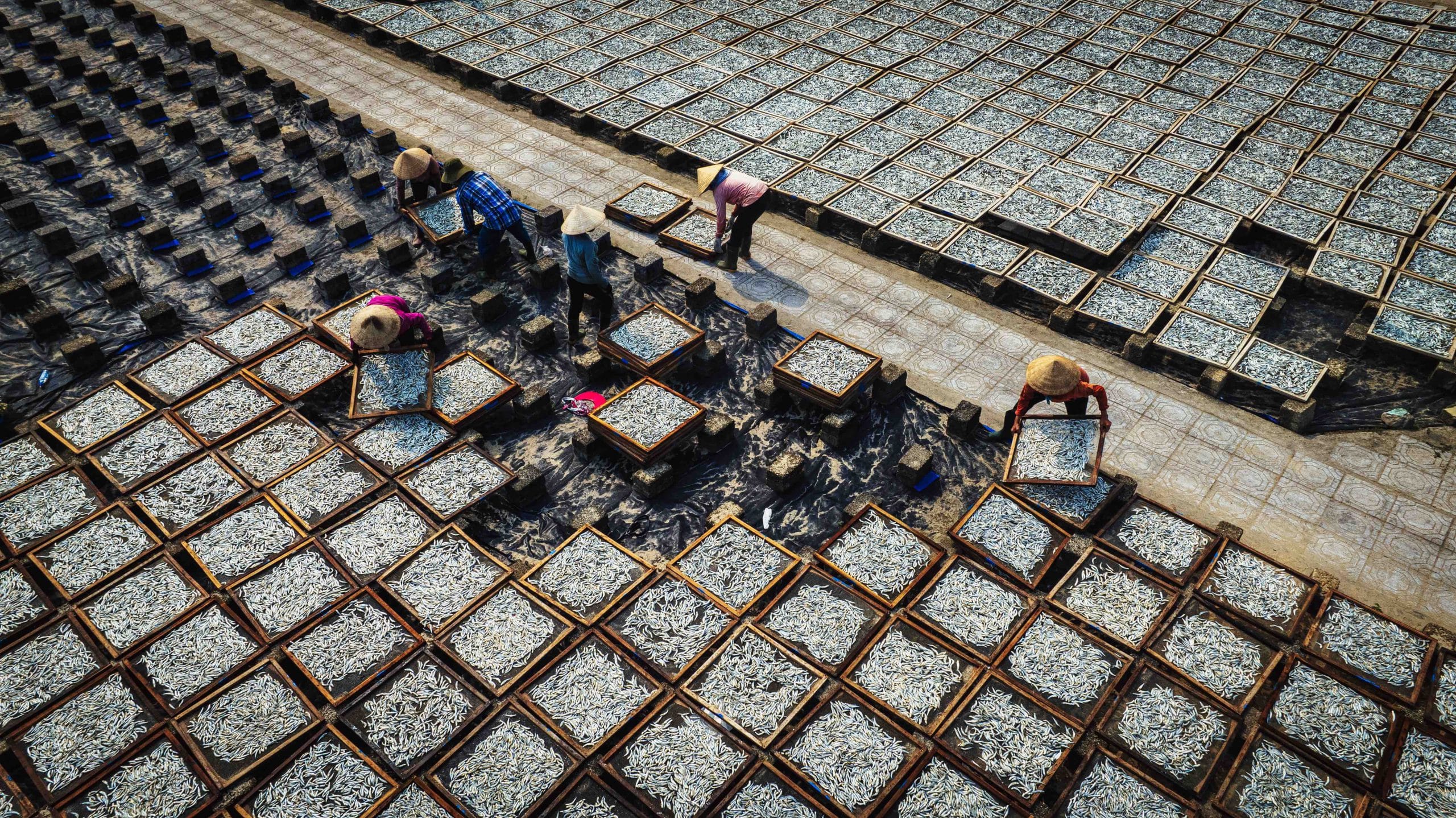 Đến với thị trấn Cửa Việt và một phần của xã Gio Việt thuộc huyện Gio Linh, tỉnh Quảng Trị vào những ngày đầu hè sẽ thấy không khí lao động nhộn nhịp. Khắp đường thôn, ngõ xóm xe ba gác nghi ngút hơi nước của những mẻ cá vừa hấp xong hối hả chạy ra “cánh đồng cá”. Người dân nơi đây tận dụng tất cả các khoảng đất trống, kê những viên gạch cao cách mặt đất khoảng 30cm để phơi cá.