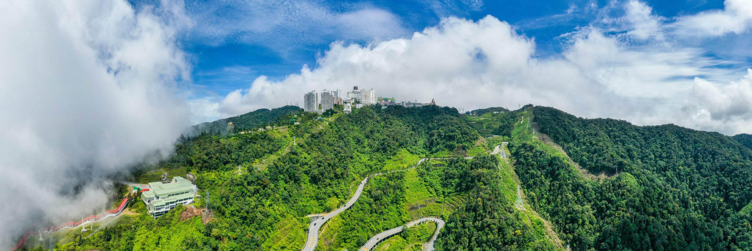 Nếu bạn là người ưa thích khung cảnh lãng mạn với biển mây bồng bềnh trước mắt hay những dải mây hờ hững, lững thững trôi qua núi đồi, cao nguyên Genting sẽ làm bạn hài lòng. Với độ cao xấp xỉ 2.000m so với mực nước biển, bạn có thể dễ dàng “gặp” mây từ cửa sổ phòng khách sạn cao tầng hay suốt hành trình trên cáp treo. Ngắm cảnh từ cáp treo trên đường lên đỉnh Genting cũng là điều đáng để trải nghiệm ở cao nguyên này. Với khoảng 20 phút cho quãng đường tầm 3km, đây là khoảng thời gian mà bạn có thể ngắm nhìn trọn vẹn từ trên cao cảnh quan của một thành phố giải trí nhiều màu sắc lọt giữa rừng nhiệt đới 100 triệu năm tuổi hùng vĩ của Malaysia. Một màu xanh mát dịu của cây lá phủ kín núi non trùng điệp hay những làn mây mỏng mảnh lan tỏa dịu dàng phủ lên thành phố sẽ là những hình ảnh đáng nhớ nhất về thiên nhiên thơ mộng nơi đây.