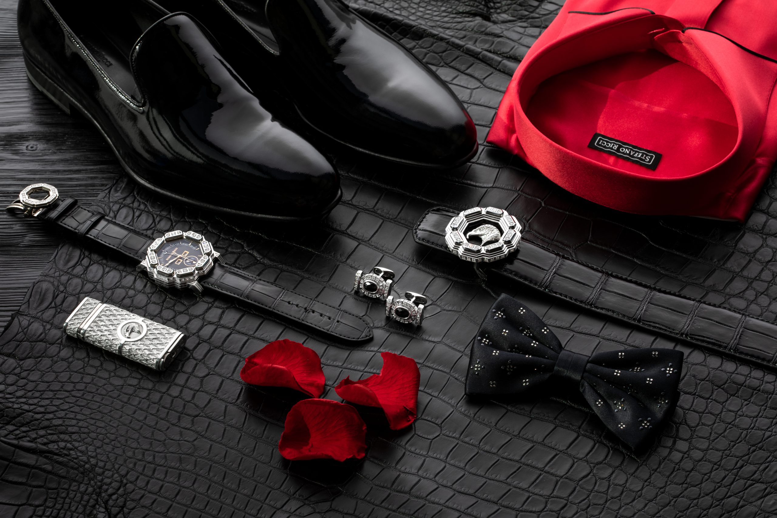 Ngoài ra, bộ sưu tập phụ kiện Stefano Ricci mang biểu tượng Royal Eagle bao gồm khuy măng sét được chạm khắc tinh xảo, với kỹ nghệ kim hoàn truyền thống từ vùng Florence, cùng các chất liệu quý hiếm và đa dạng từ kim loại, hợp kim đến vàng trắng, kim cương và đá quý. Ưu tiên chọn lọc chất liệu thượng hạng nhất, bộ sưu tập túi xách nhà Stefano Ricci từ da cá sấu, nổi bật với biểu tượng Royal Eagle được dập nổi tinh tế cùng dây lưng và áo thun polo mang dấu ấn riêng.