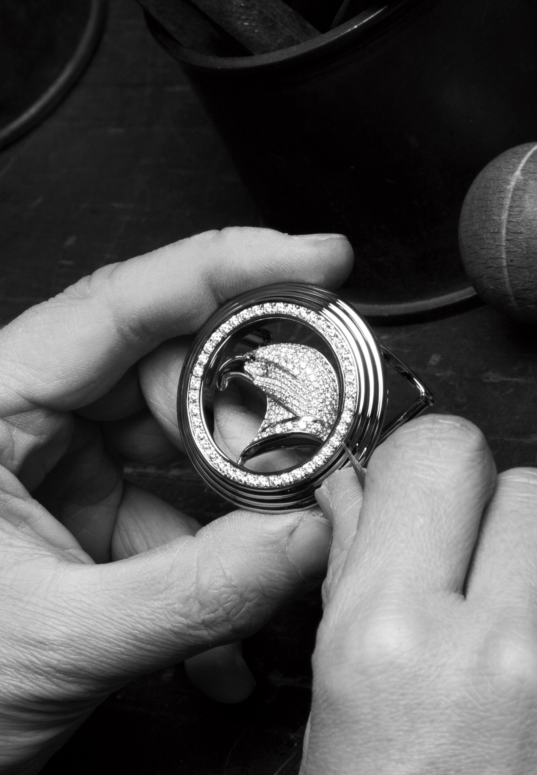 Xuất hiện song song cùng cái tên Stefano Ricci, Royal Eagle – Đại bàng hoàng gia mang trong mình tinh thần mạnh mẽ và kiên định của nhà thiết kế Stefano, cũng như vị thế đỉnh cao, khắc họa trọn vẹn chân dung khách hàng thượng lưu của nhà mốt.