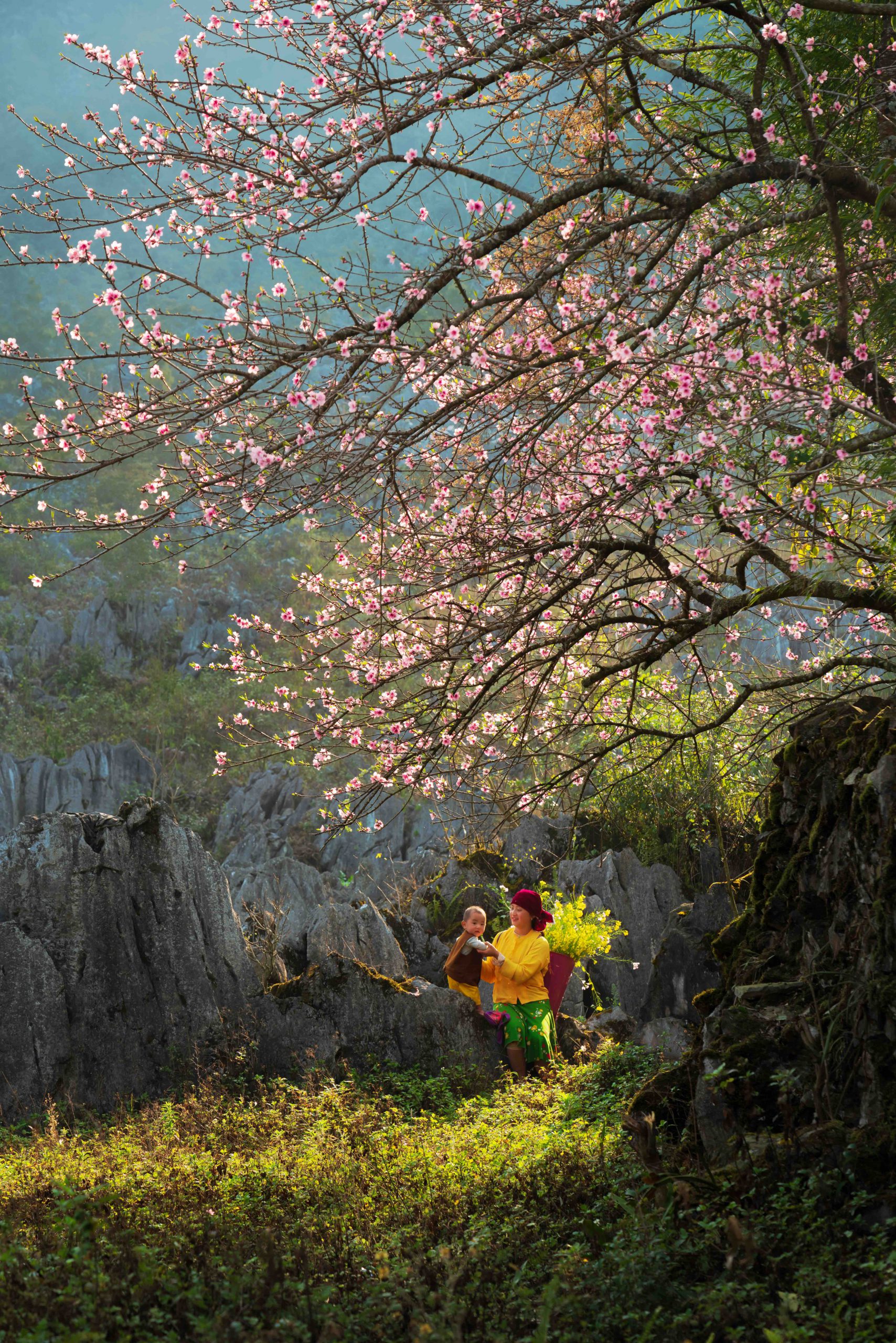 Con đường quanh co dẫn chúng tôi tới xã Sà Phìn, đi ngang qua những hàng mận trắng muốt nằm dưới thung lũng, tới nhánh rẽ vào đường lên Lũng Cú. Dù không còn nhiều nhưng hoa đào, mận vẫn thấp thoáng trong những bản nhỏ ở Lũng Táo, Ma Lé… khi nhìn từ trên cao xuống. Và sắc màu ấy lại xuất hiện nhiều hơn khi điểm đến Lũng Cú hiện ra. Hoa ở đây không mọc trên đá nữa, mà ngay trước cửa hay trong vườn nhà ở Lô Lô Chải, Thèn Pả hay Tả Gia Khâu. Chính quyền và người dân nơi đây đang tích cực trong việc bảo tồn những điểm thu hút mang tính địa phương, trong đó có việc bảo vệ các gốc đào và trồng thêm hoa đào – loài hoa đặc trưng của mùa xuân Hà Giang.