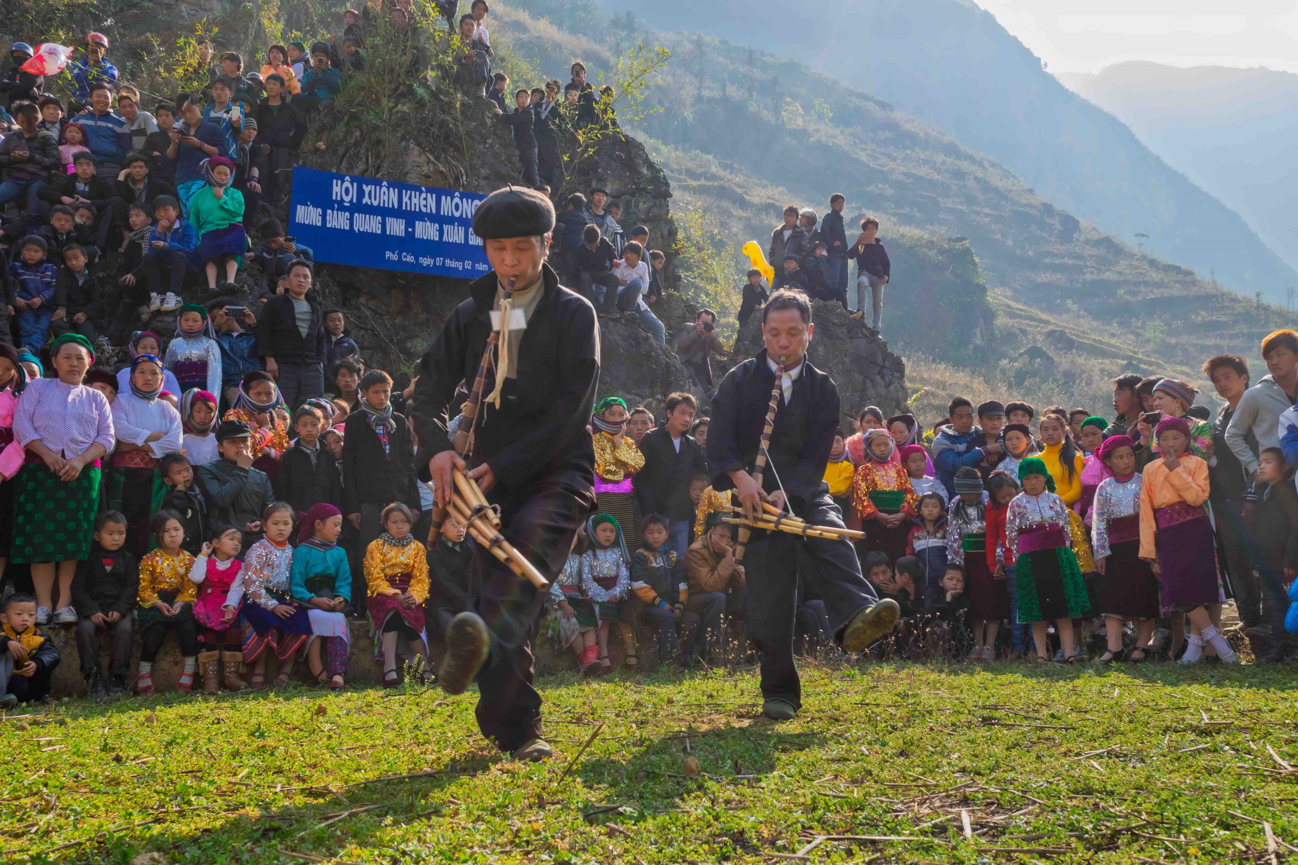 Không chỉ là mùa của sắc hoa, xuân Hà Giang còn là mùa của các phiên chợ nhộn nhịp và lễ hội đông vui. Người lớn và trẻ em trong trang phục sặc sỡ với nụ cười rạng rỡ đang rảo bước nhanh trên các con đường về trung tâm xã. Tiếng gọi nhau í ới vang khắp bản làng và núi rừng. Mang theo tâm trạng hân hoan, quãng đường trở lại thị trấn Đồng Văn, qua đèo Mã Pí Lèng về Mèo Vạc cũng vì thế mà như ngắn lại. Chúng tôi dành ít phút để dừng chân ở một phiên chợ. Vài người đàn ông Mông nồng nhiệt rót mời rượu. Chất men nồng ấm như lan tỏa cùng sự mộc mạc và mến khách của người dân nơi đây.