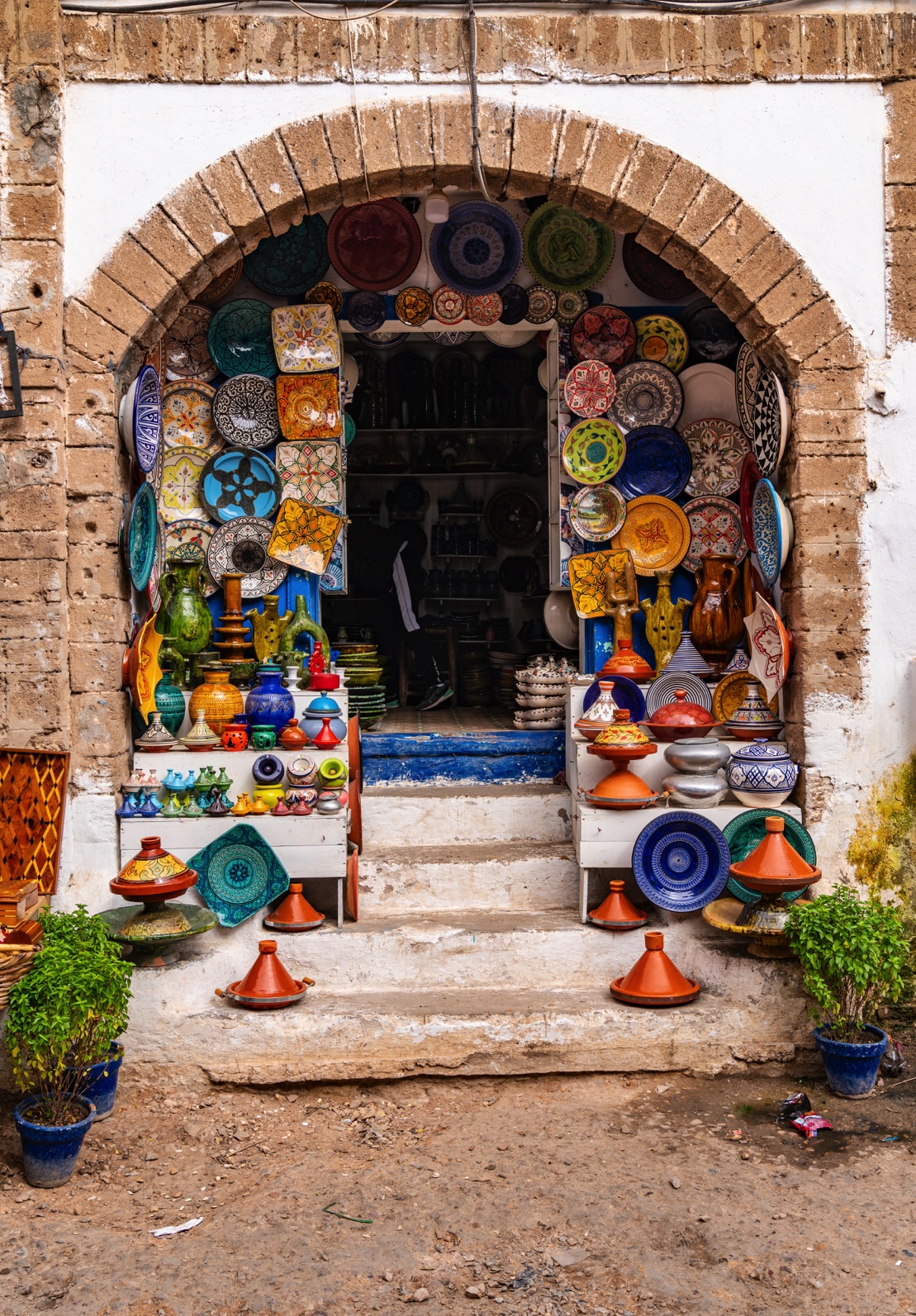 Trái ngược với sự đông đúc, ồn ào náo nhiệt của Marrakesh và Chefchaouen, khi đến Essaouira tôi có cảm giác thư thái, vui tươi khi được nhìn thấy biển với gió thổi mát rượi và hít thở bầu không khí trong lành. Essaouira là cảng cá mòi đầu tiên trên thế giới được khám phá vào thế kỷ 16 bởi người Mogador, Bồ Đào Nha. Trong nhiều thế kỷ, Essaouira là cầu nối giao thương vùng cận sa mạc Sahara với châu Âu. Ngày nay nó chỉ còn lại một cảng cá khiêm tốn. Essaouira khá nhỏ, chỉ có vài chục đường chính, medina cũng không quá đông đúc, không nhiều ngóc ngách nên không thể đi lạc. Mọi con đường đều có thể đi tới quảng trường trung tâm. Hình ảnh đẹp nhất về Essaouira có lẽ là cả thành phố màu trắng được bao bọc bởi mảng tường thành màu hồng nhạt nằm bên bờ biển xanh. Các ngôi nhà ở Essaouira đa số được sơn màu trắng, điểm xuyết thêm một chút màu xanh, vàng rất dễ chịu và mát mắt. Những ngày ở Essaouira mỗi sáng tôi đều đi chợ và ra cảng cá, ngắm nhìn người dân mua bán rau củ quả, thịt cá tươi rói mới đánh bắt, nghe tiếng nói cười lao xao và hít hà đủ loại mùi vị quyện vào nhau rất biển, rất mặn mòi. Ở Essaouira, nắng vàng len lỏi qua những ngõ nhỏ, giếng trời, các khung cửa, hắt lên những cánh cửa gỗ chạm trổ cầu kì tạo thành những mảng sáng ma mị và cuốn hút. Ánh sáng đó cùng với những mùi hương gia vị, hương của tách trà bạc hà, với những ngôi nhà cũ kỹ mang dấu ấn của thời gian khiến cho tôi nhớ mãi.