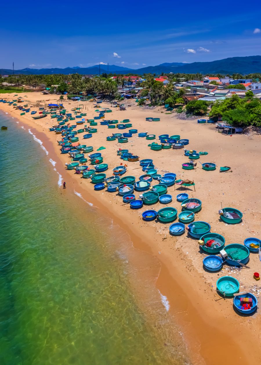 Mỗi lần về với Phú Yên, tôi đều ghé thăm làng chài Xuân Hải thuộc thị xã Sông Cầu. Tôi đã đi qua nhiều làng chài dọc theo dải bờ biển từ Bắc vào Nam nhưng Xuân Hải là nơi tôi yêu mến nhất. Xuân Hải là nơi có nhiều thuyền thúng bậc nhất. Thuyền thúng ở Xuân Hải khá lớn, đường kính từ 2 – 3m, được điều khiển bằng máy và sơn màu xanh bắt mắt. Nhìn từ trên cao xuống, chúng giống như những chiếc ô tròn màu xanh xếp dọc theo bờ biển cong cong, trên nền cát vàng càng nổi bật hơn. Ngắm nhìn những con thuyền thúng tròn xoe, tôi luôn muốn thử cảm giác đứng bên trong, chao nghiêng cùng sóng biển tròng trành và chia vui cùng ngư dân khi thu được mẻ lưới đầy ắp cá. Sáng sớm ở Xuân Hải, tôi thích đi bộ chầm chậm từ bờ biển, trên con đường bê tông nhỏ dẫn sâu vào trong làng, những ngôi nhà nép mình dưới rặng dừa cao vút, được bao bọc bởi màu xanh dịu dàng của biển và trời, đâu đó là tiếng lao xao của các bà, các mẹ, tiếng trẻ con í ới. Một khung cảnh mộc mạc, gần gũi đặc trưng vùng biển càng làm tôi quyến luyến xứ này.