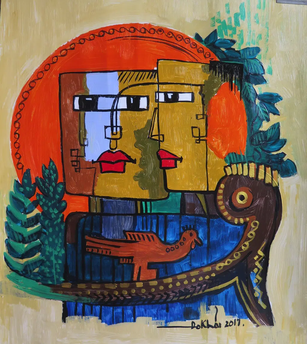Ngày xưa có Tân và Lang là hai anh em ruột, dáng người và mặt mày giống nhau như đúc, chính người nhà cũng nhiều phen nhầm lẫn. Cha họ là một người cao to nhất trong vùng, từng được vua Hùng triệu về Phong Châu ban thưởng và đặt tên là Cao. Từ đó gia đình lấy họ “Cao”. Hai anh em lớn lên thì cha mẹ qua đời. Cả hai quyến luyến nhau không rời nửa bước.