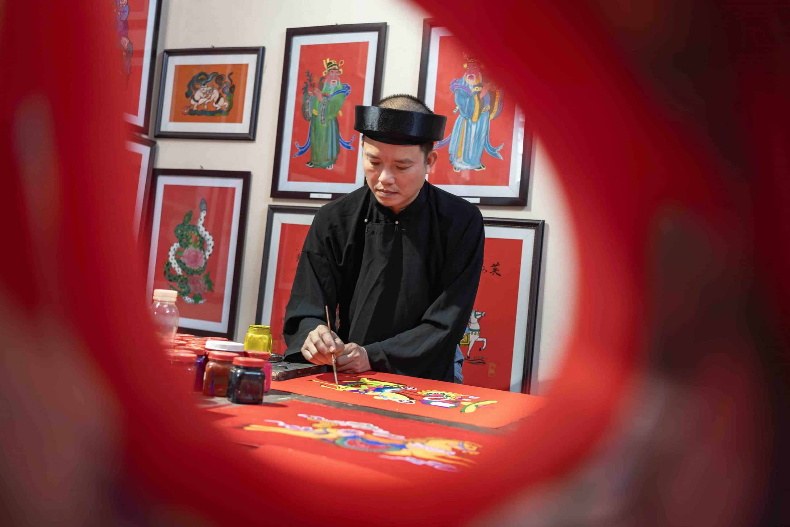 Sự trở lại này vì thế không chỉ là sự hồi sinh nghề cũ, mà còn là sự hồi sinh của một sắc đỏ mang lực biểu tượng đặc biệt. Dưới bàn tay của nghệ nhân Đào Đình Chung, tranh đã bước ra khỏi vai trò “ký ức Tết” để trở thành một hiện diện thị giác đương đại: rực rỡ nhưng tiết chế, truyền thống nhưng không hoài cổ, thân thuộc nhưng đủ lạ. Với Chung, nghệ nhân không chỉ làm ra tranh, mà là người giữ cho ký ức văn hóa tiếp tục thở trong đời sống hôm nay, công việc của anh đi xa hơn nghề thủ công để trở thành một thực hành mang tính nghiên cứu sáng tạo.
