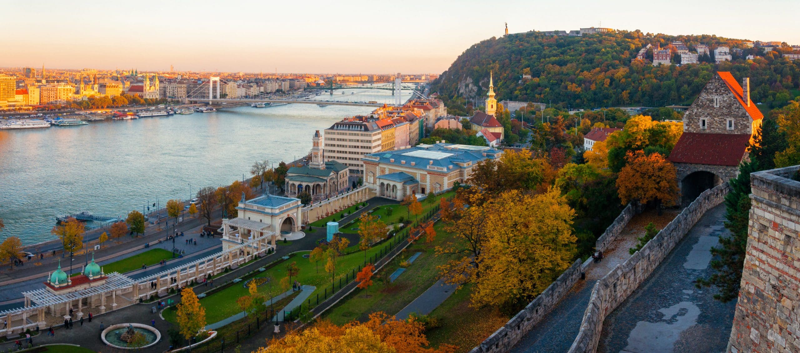 Bupadest đón khách ở ga Keleti, một công trình nằm ở bờ đông Danube, tức phần “Pest” của tên gọi Budapest, đối ngạn với phần phía tây là “Buda”, nơi tập trung các lâu đài và thành phố cổ xưa. Dường như các công trình ở Budapest còn lại từ thời hoàng kim của đế chế Áo – Hung có phần nguy nga cạnh tranh với thủ đô phía Tây của đế chế này. Điểm đặc biệt nhất của Budapest là thành phố nằm ôm trọn hai bờ sông Danube, khoe vẻ yêu kiều lộng lẫy trong tiết trời thu. Quy hoạch của các thời kỳ sau vẫn tôn trọng khu trung tâm lịch sử, để dành cho tòa lâu đài Buda trên ngọn đồi phía Tây có vị trí nổi bật chế ngự đường chân trời thành phố, nhìn xuống cây cầu Xích và đối ngạn là tòa nhà Quốc hội có từ năm 1904.
