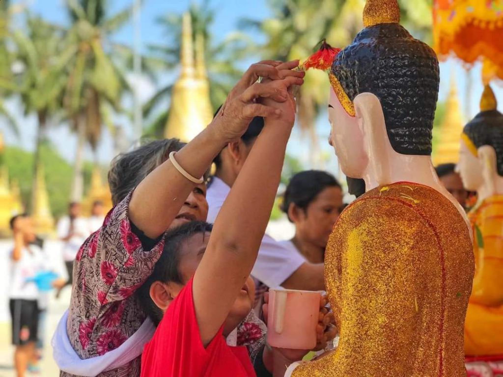 Ngày Tết thứ ba sẽ là lễ tắm Phật tại chùa và tắm cho ông bà, cha mẹ ở nhà. Tại chùa, các phật tử sẽ dùng nhành hoa nhúng vào xô nước thơm (nước ướp hương hoa từ hoa bưởi, hoa lài…) và vẩy lên các tượng Phật nhằm bày tỏ lòng thành kính đến Đức Phật. Bên cạnh đó, nghi thức còn mang ý nghĩa gột rửa điều không may trong năm cũ, đón may mắn bình an trong năm mới. Sau khi từ chùa trở về, con cháu trong nhà chuẩn bị phong tục tắm cho các bậc sinh thành. Ông bà, cha mẹ ngồi trên ghế trước sân nhà, nghe con cháu chúc sức khỏe năm mới, nói lời cảm ơn và cả những lời xin lỗi. Lần lượt từng người, múc gáo nước ướp các cánh hoa cúc, xối từ tóc rồi dùng khăn khô lau chân cho ông bà, cha mẹ.
