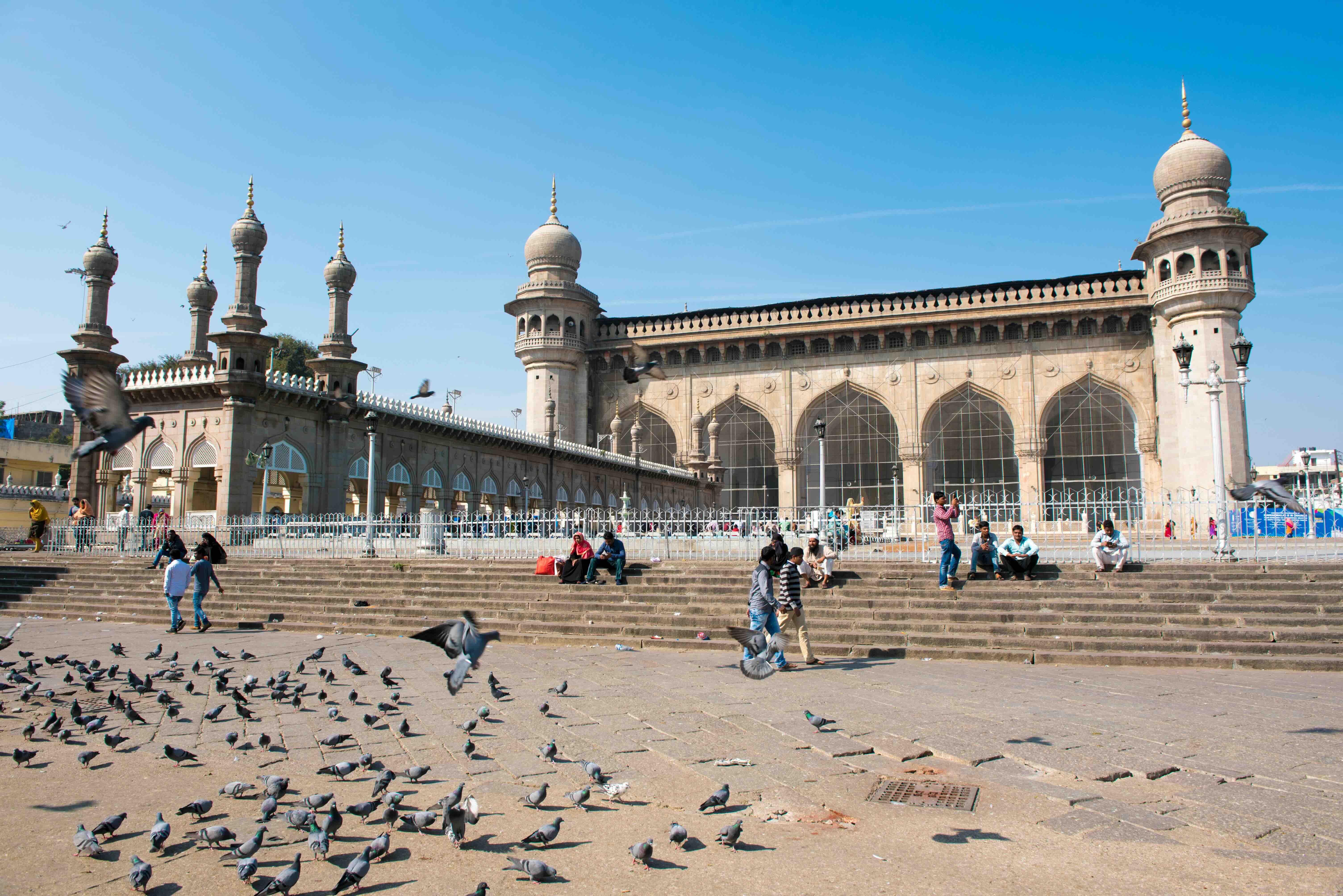 Biểu tượng du lịch của thành phố này là tháp cổng Charminar khổng lồ được xây dựng năm 1591, vừa là dấu mốc khi triều đại Qutb Shahi dời đô đến Hyderabad và cũng để kỷ niệm việc dập tắt thành công bệnh dịch hạch đang lan rộng khi đó. Cái tên Charminar theo tiếng Urdu có nghĩa là “4 trụ cột”, phù hợp với kiến trúc gồm bốn tháp cao hơn 50m, trang trí công phu theo phong cách Ấn Độ – Hồi giáo kết hợp với Ba Tư cổ đại. Bên trong tháp cũng có kết cấu cân đối, có bậc thang dẫn lên các tầng trên, và cửa mở ra 4 hướng của thành phố. Với tuổi đời hơn 4 thế kỷ, Charminar đã có mặt trên quốc huy của bang Telangana và được gìn giữ rất tốt qua nhiều thời kỳ. Trong kiến trúc quy hoạch của thành phố cổ Hyderabad, Charminar đóng vai trò vị trí trung tâm, xung quanh đó là các cảnh điểm nổi bật khác như chợ Laad Bazaar hay nhà thờ Hồi giáo Makkah (hay Mecca Masjid). Đây cũng là nhà thờ Hồi giáo lớn nhất toàn bang, xây dựng từ thế kỷ 17 với sức chứa lên tới 10.000 người cùng cầu nguyện. Tương truyền rằng mỗi viên gạch mà vua Muhammad Qutb Shah – người cai trị thứ 6 của vương triều Qutb Shahi – dùng để xây Mecca Masjid đều đúc bởi đất mang về từ thánh địa Mecca, Saudi Arabia. Sự công phu đó biến thánh đường này thành công trình di sản có kiến trúc đẹp bậc nhất Ấn Độ với tầm vóc đồ sộ, nguy nga tráng lệ và là điểm hành hương quan trọng của các tín đồ Hồi giáo trong và ngoài nước.