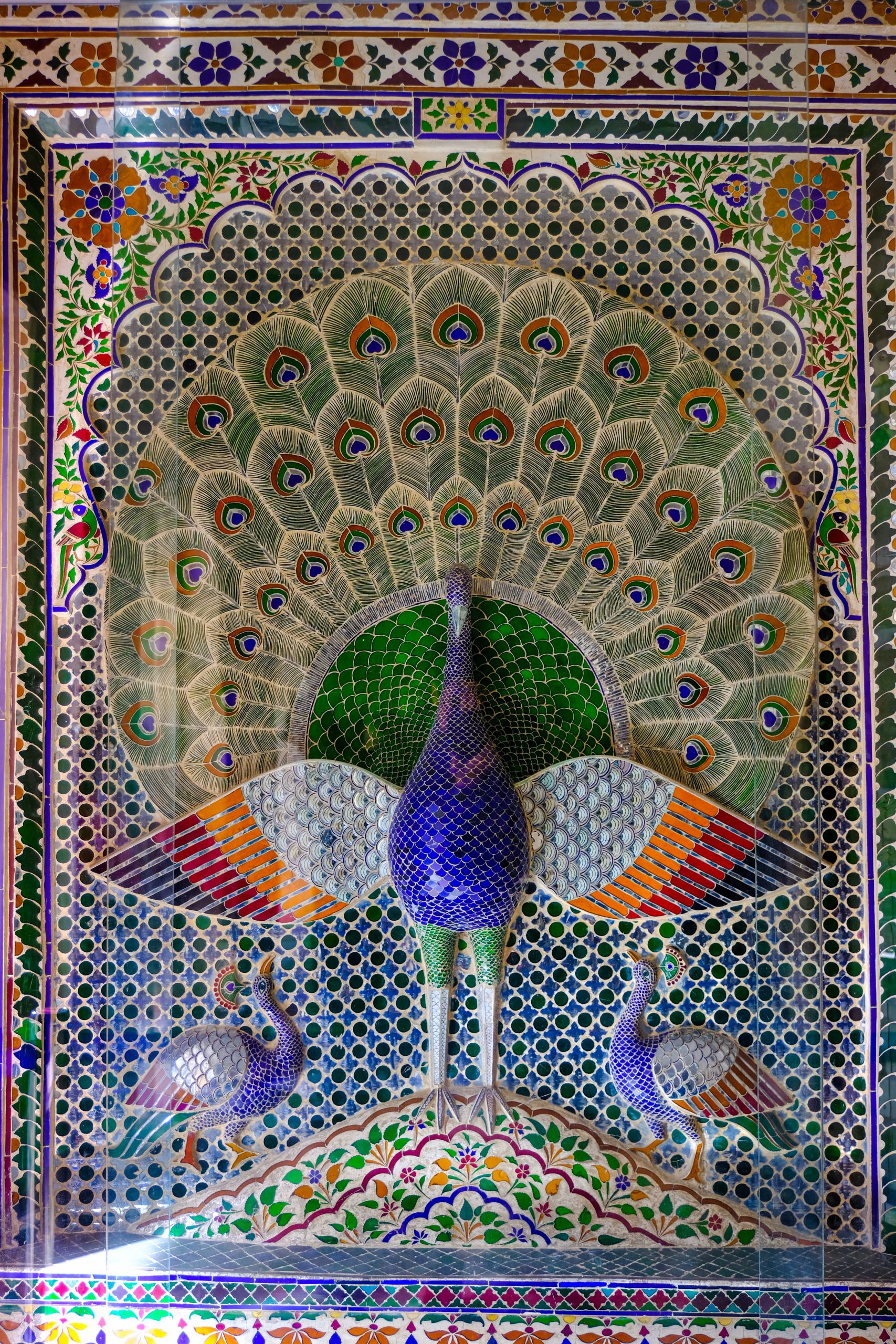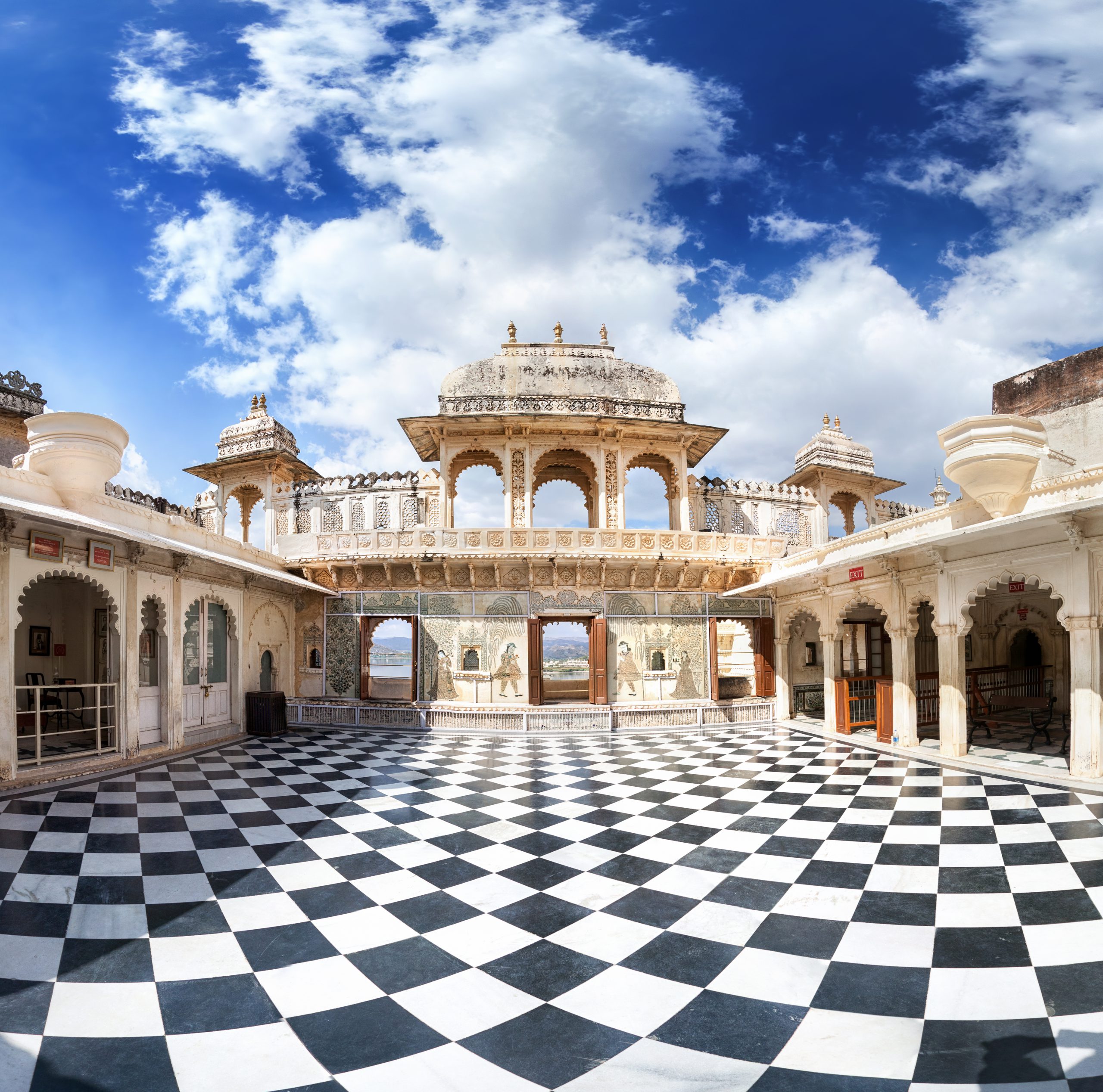 Trước tiên và ấn tượng nhất chính là Bảo tàng Cung điện Thành phố (City Palace) nằm phía đông hồ Pichola trong xanh, cũng là hồ nước lớn nhất trong 5 hồ của Udaipur. Quần thể đồ sộ này soi bóng bên gương hồ phẳng lặng càng nổi bật kiến trúc tổng hòa của phong cách Mughal đặc trưng (phong cách kiến trúc pha trộn phong cách Hồi giáo, Ba Tư và Ấn Độ) lai châu Âu thời trung cổ. Qua lớp mặt tiền cao lớn đồ sộ hơn 30m là không gian cung điện bên trong với 11 tòa nhà ngày nay đã được biến thành các khu trưng bày tham quan như: cung điện Hồng Ngọc (Manak Mahal), cung điện Ngọc Trai (Moti Mahal) hay cung điện Gương (Sheesh Mahal). Mỗi căn phòng trong các cung này được bài trí và tô màu họa tiết khác nhau khiến người ta như “lạc lối” giữa những bảo tàng sắc màu. Các cung điện của City Palace dịu dàng ôm lấy vườn treo Amar Vilas rộng lớn với điểm nhấn là không gian mở, thoáng đãng xanh mát cùng vòi phun nước lãng mạn và các hàng cột đá cẩm thạch rực hồng trong nắng. Bên cạnh việc trưng bày các vật phẩm hoàng gia, du khách còn được tận mắt ngắm nhìn nghệ thuật dân gian của vùng đất này thông qua các bức tranh khảm đầy sắc màu cỡ lớn trong City Palace. Udaipur còn nổi tiếng về nghệ thuật vẽ tranh tiểu họa với chi tiết tinh xảo trên giấy, ngà voi, xương lạc đà. Được biết để đạt được độ tỷ mỉ, nét bút thường được lấy từ lông đuôi sóc hoặc lông mi lạc đà. Còn màu sắc sử dụng thì lấy từ bột đá tự nhiên. Chủ đề tranh đa dạng, có thể về các trận chiến cổ xưa, các vị thần của đạo Hindu, hay phong cảnh biểu trưng của các thành phố thuộc bang Rajasthan.