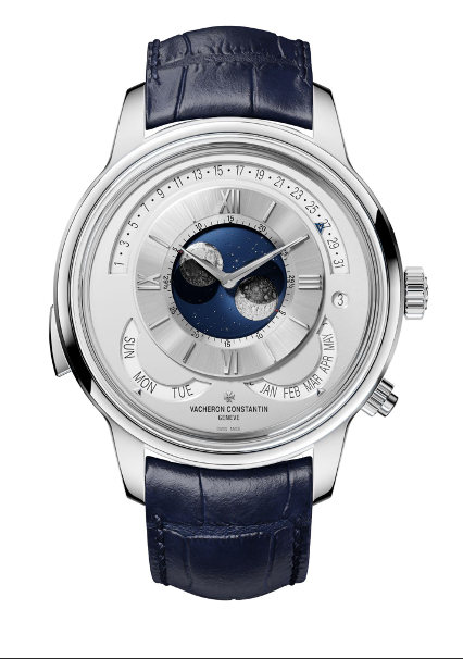 Là phiên bản nguyên chiếc được tạo ra bởi bộ phận Les Cabinotiers của Vacheron Constantin, chiếc đồng hồ Dual Moon Grand Complication hai mặt này với 11 biến chứng thiên văn và liên quan đến thời gian được điều chỉnh bởi một tourbillon và được tăng cường bởi một bộ lặp phút tỏa ra một mức độ thanh lịch hiếm có.